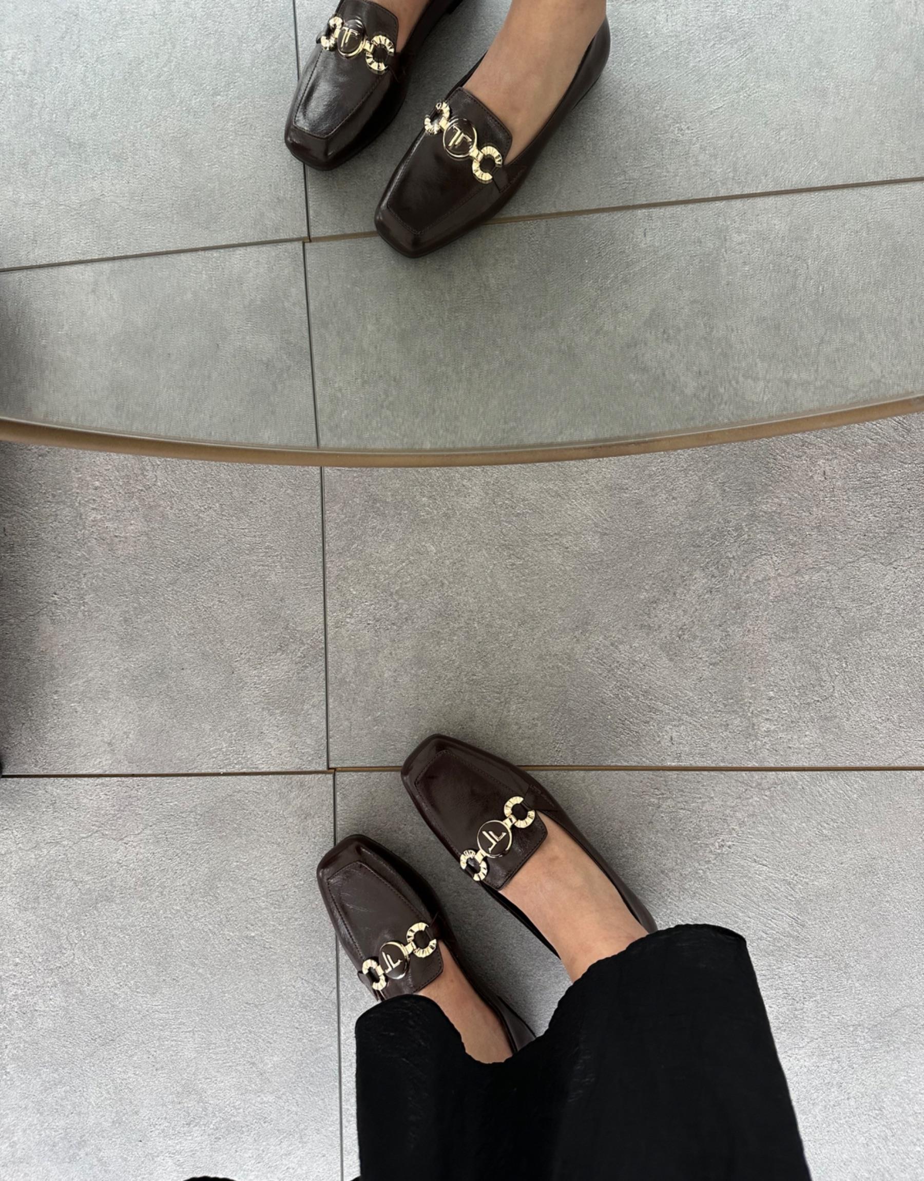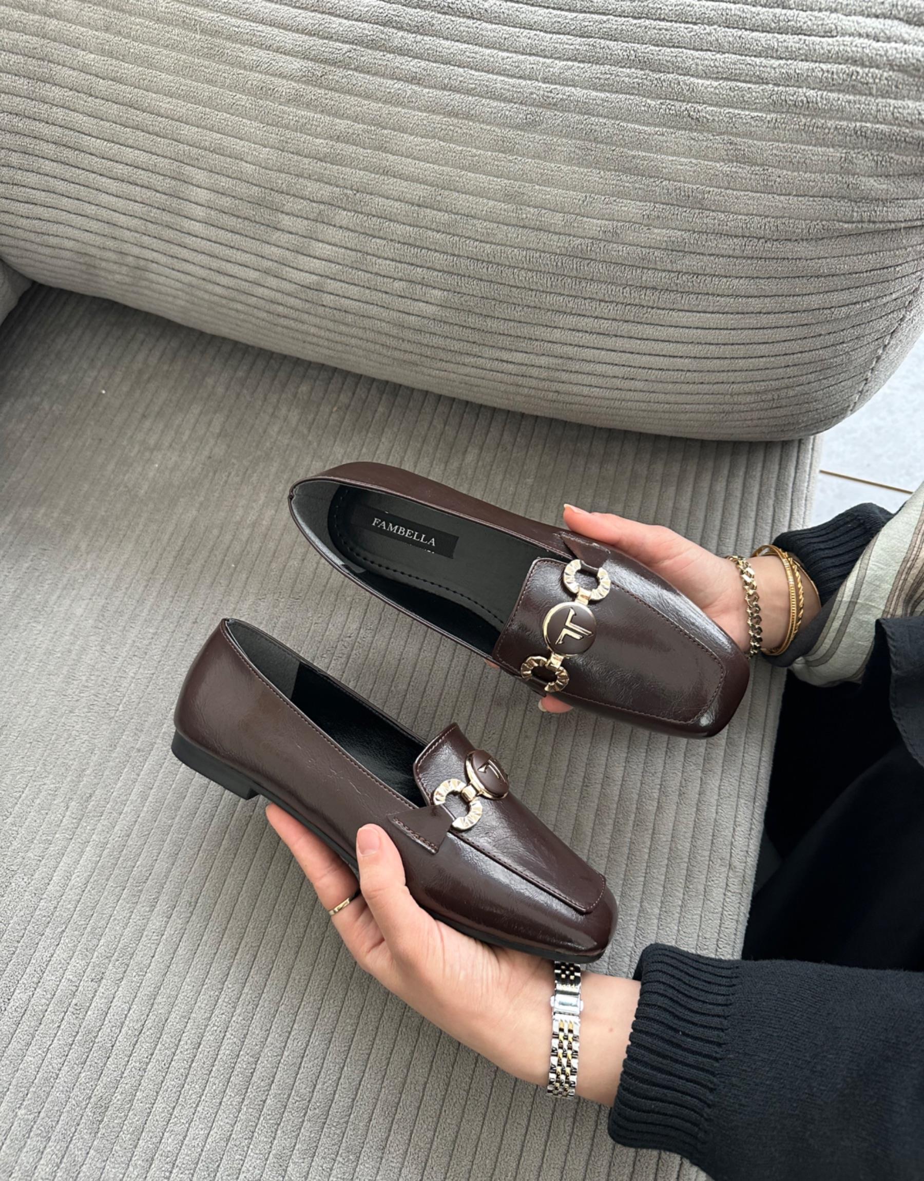 Ketna Küt Burun Ön Toka Aksesuar Detay Kadın Babet Acı Kahve Kırışık