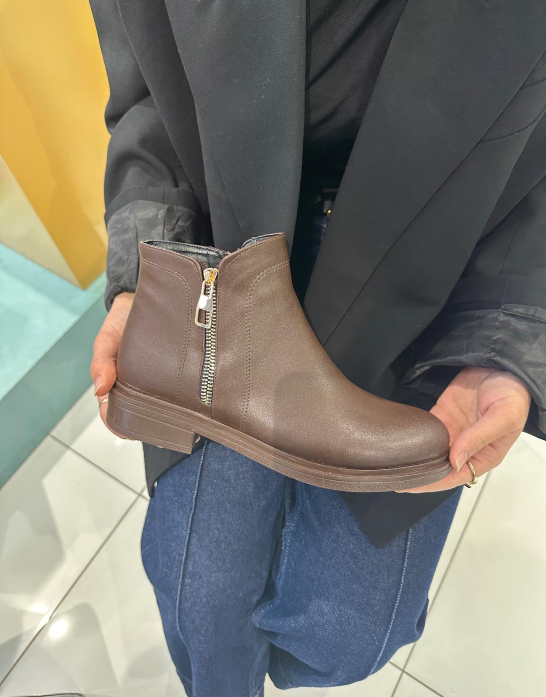 Bayan Acı Kahve Deri Ansenna Yuvarlak Burun Fermuar Detay Kadın Bot | Fambella