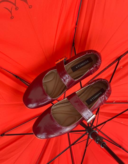 Canko Küt Burun Toka Detay Kadın Babet Bordo Rugan