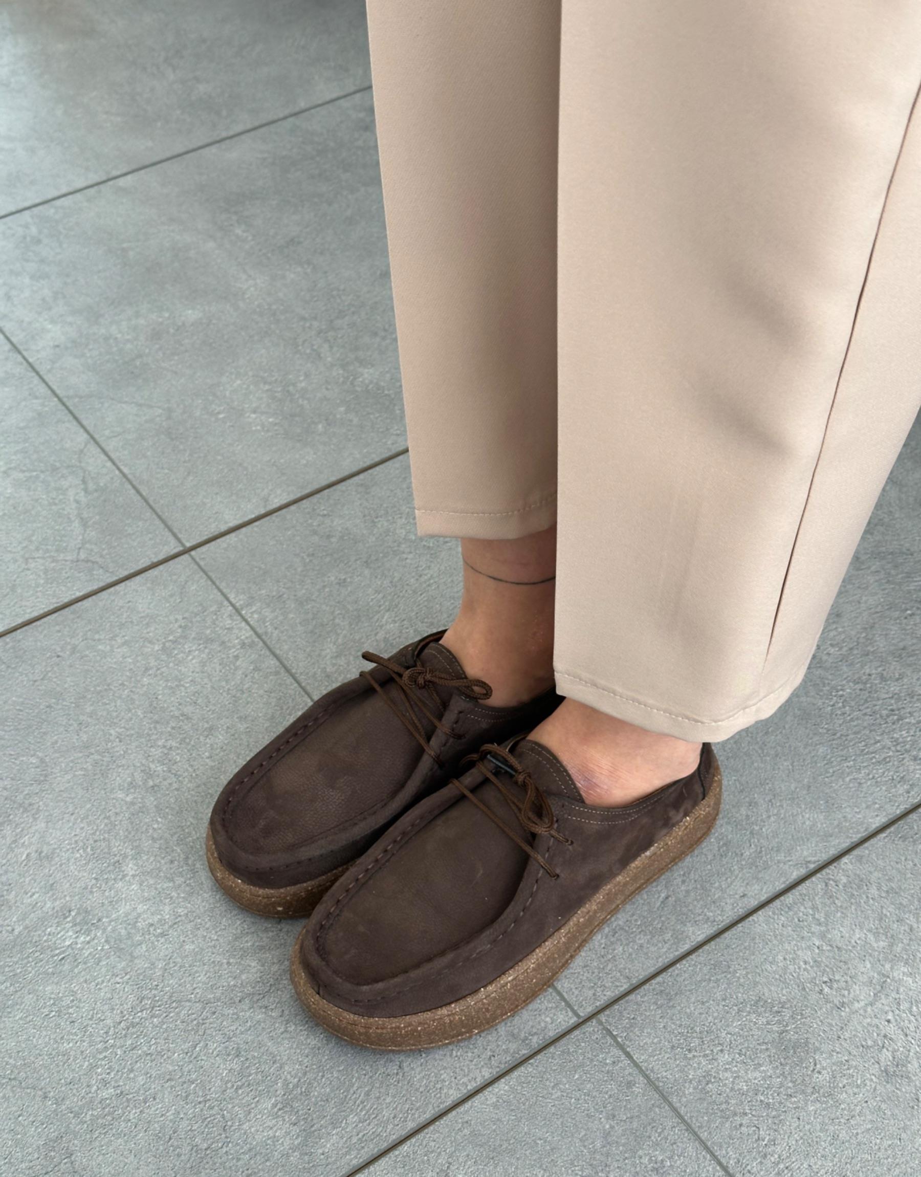 Bayan Acı Kahve Deri Javed Oval Burun Kalın Taban Bağcıklı Kadın Hakiki Deri Loafer | Fambella