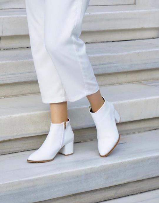 Jaipur Sivri Burun Topuklu Fermuarlı Kadın Bot Beyaz Deri