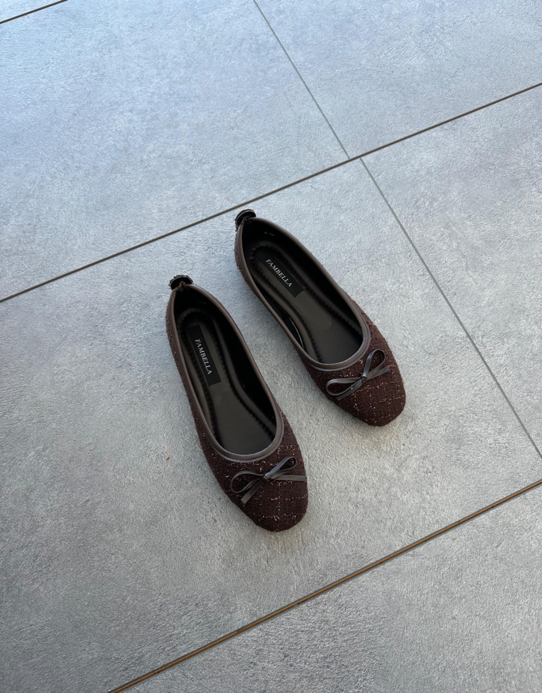 Bayan Acı Kahve Teks Shape Oval Burun Fiyonk Detay Pullu Kadın Babet | Fambella