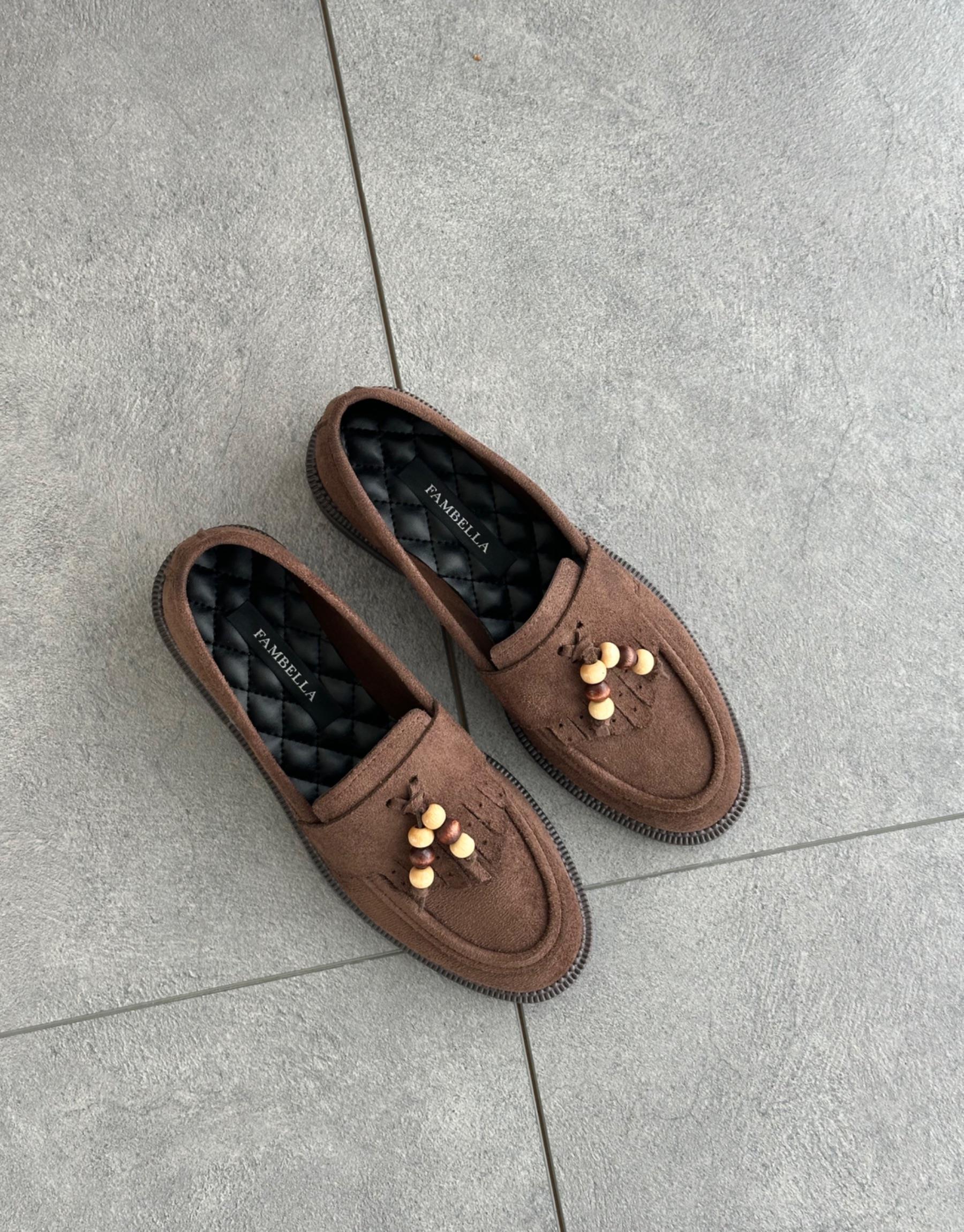 Bayan Acı Kahve Süet Viora Oval Burun Ön Püskül Detay Kadın Loafer | Fambella