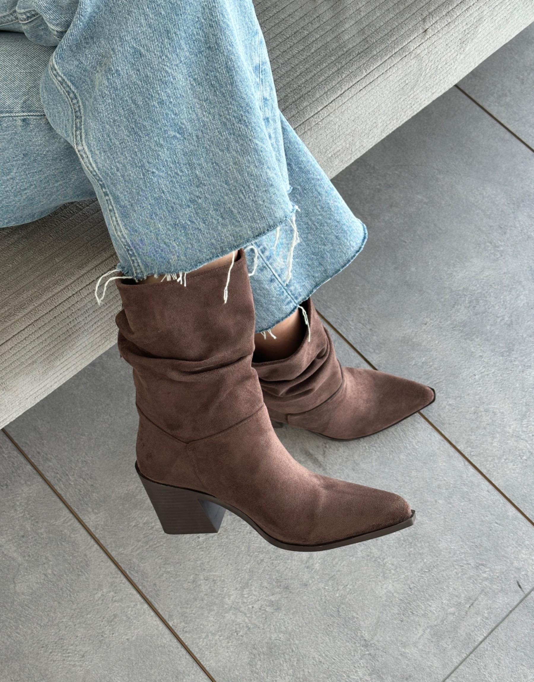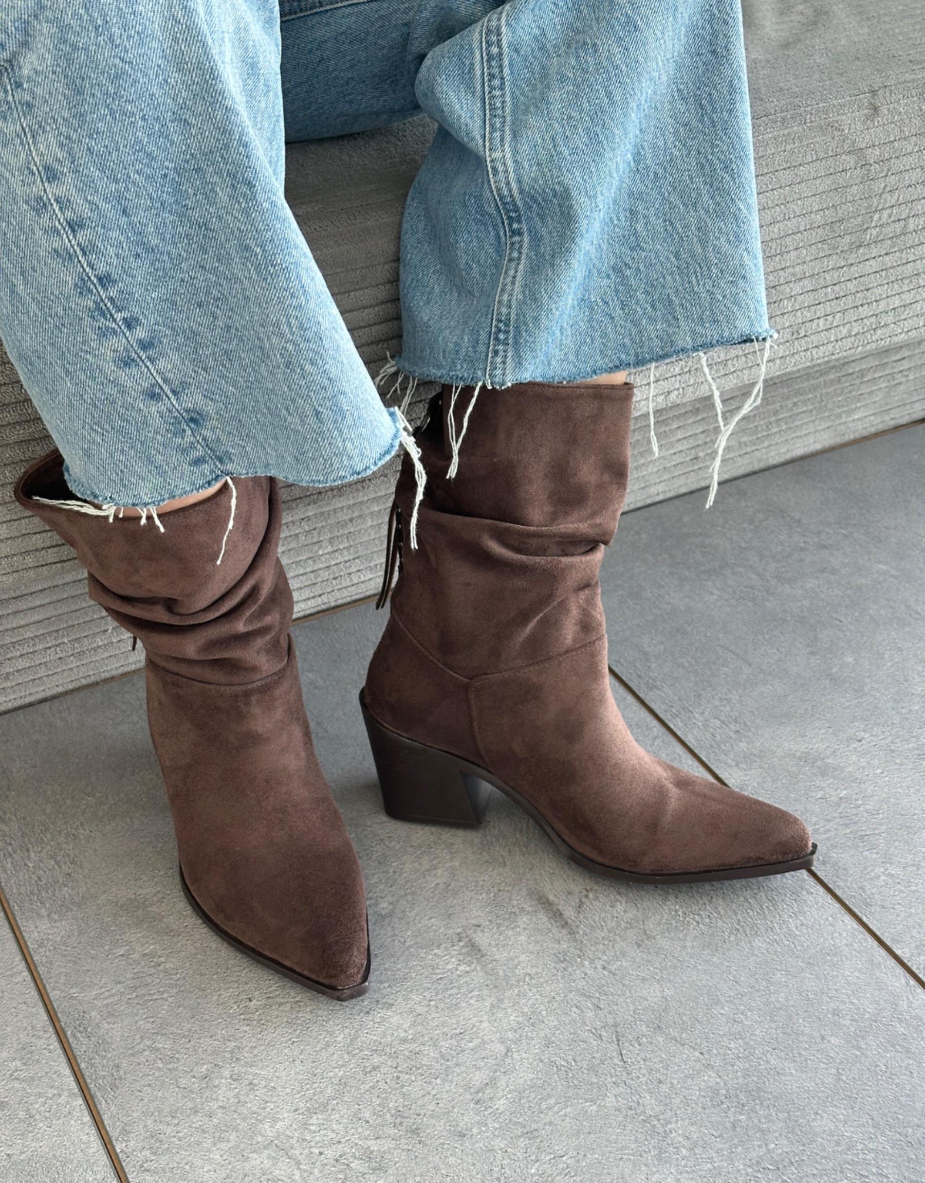 Bayan Acı Kahve Süet Wati Sivri Burun Arka Aksesuar Detay Kadın Topuklu Süet Bot | Fambella