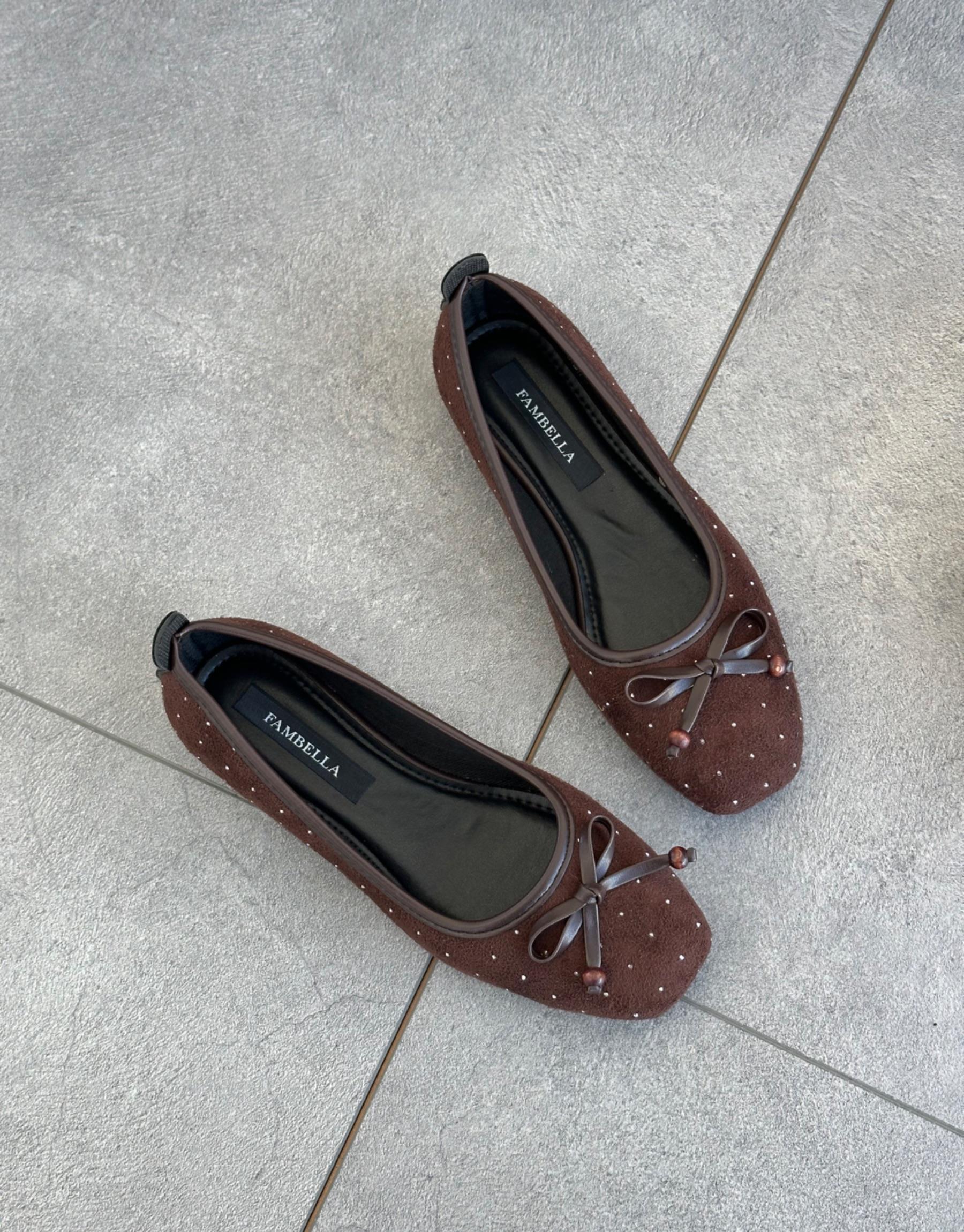 Bayan Acı Kahve Süet Yatten Küt Burun Taş Detay Kadın Babet | Fambella