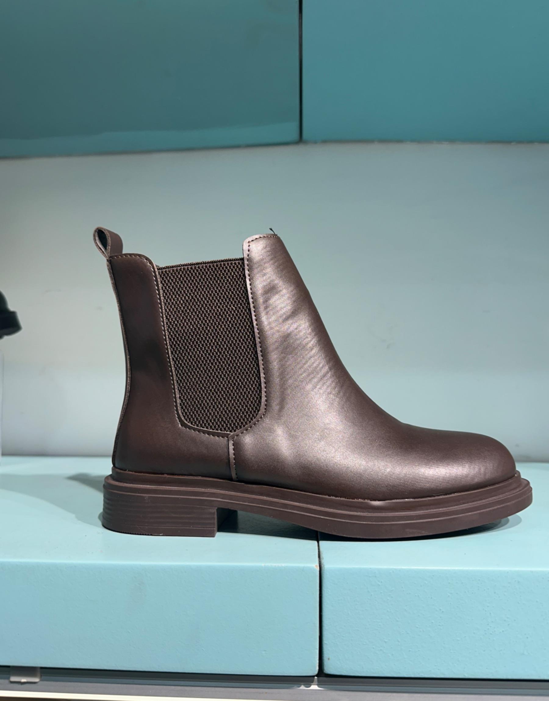 Bayan Acı Kahve Deri Yekko Yuvarlak Burun Lastik Detay Kadın Bot | Fambella