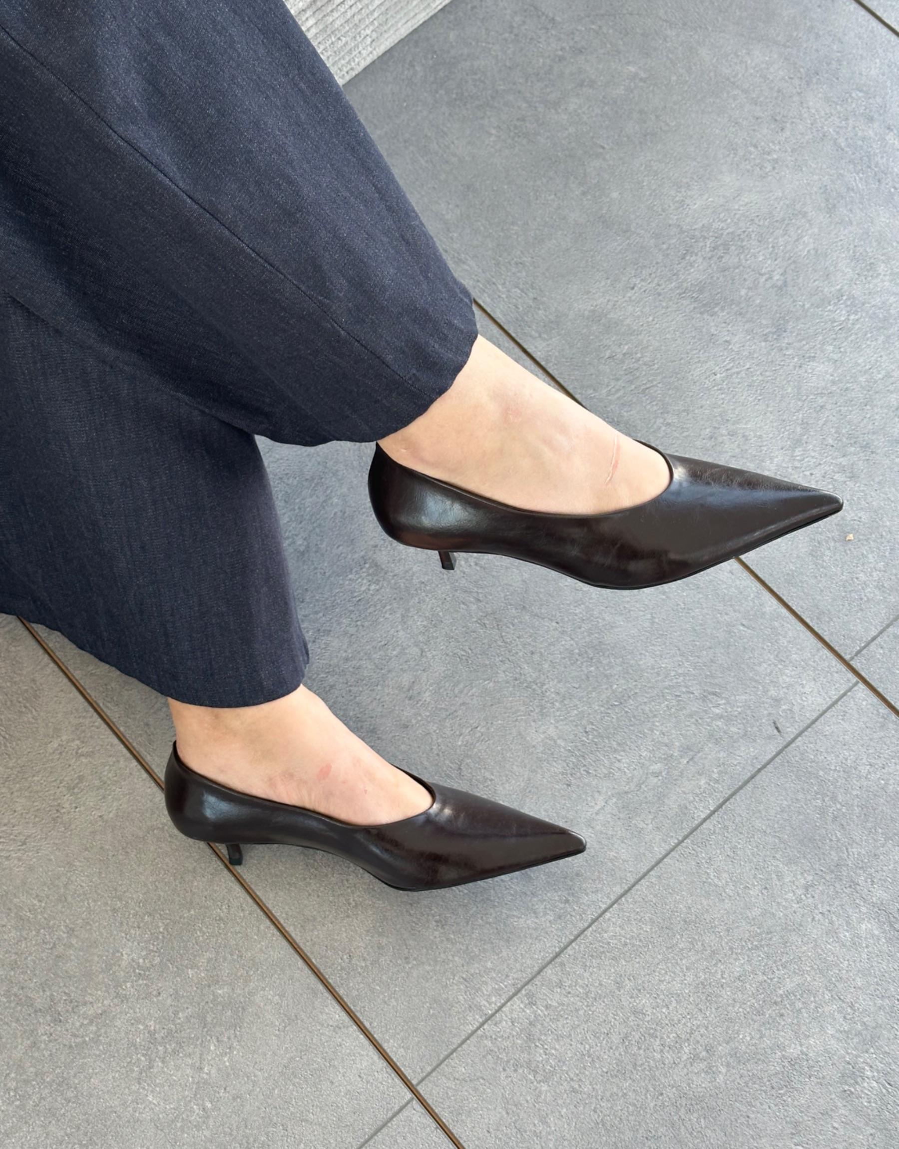 Bayan Acı Kahve Bellami Sivri Burun Arkası Kapalı Topuklu Kadın Ayakkabı | Fambella