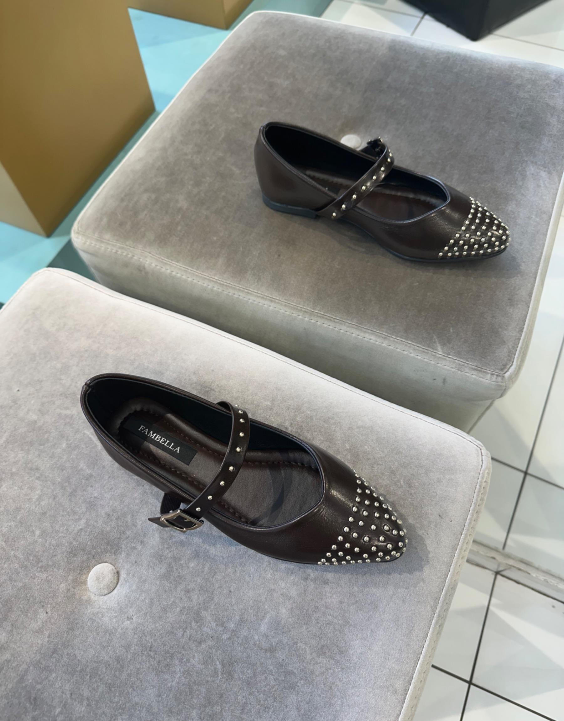Bayan Acı Kahve Besar Sivri Burun Ön Trok Taş Detay Kemerli Kadın Babet | Fambella