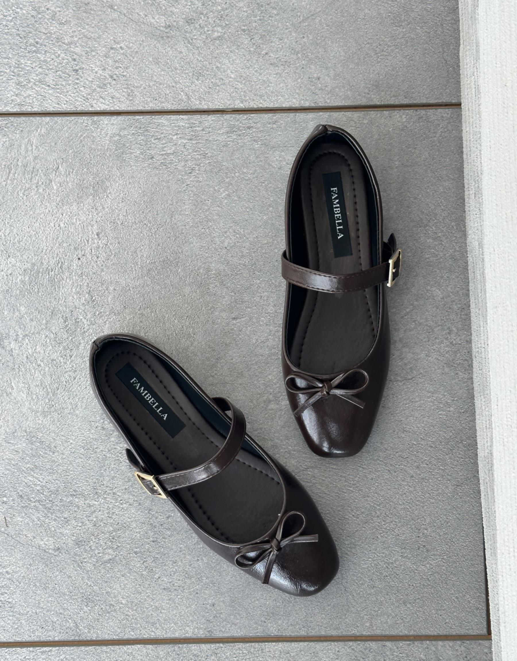 Bayan Acı Kahve Kırışık Melkas Oval Burun Fiyonk Detay Kemerli Kadın Babet | Fambella