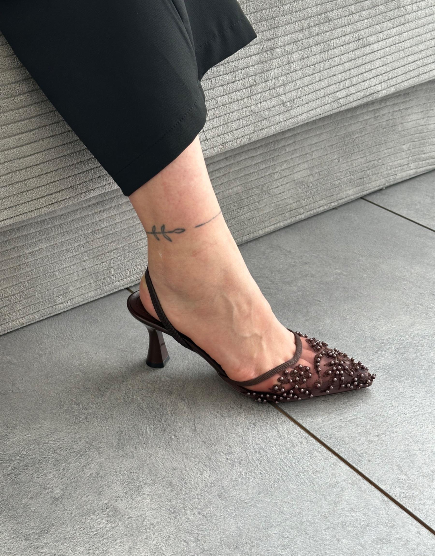 Yiny Oval Burun File Taş Detay Kadın Topuklu Ayakkabı Acı Kahve