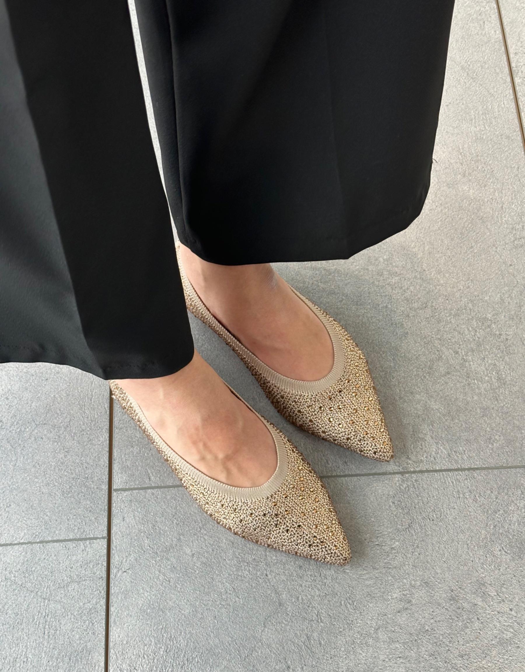 Akaso Oval Burun Taş Detay Kadın Triko Babet Bej
