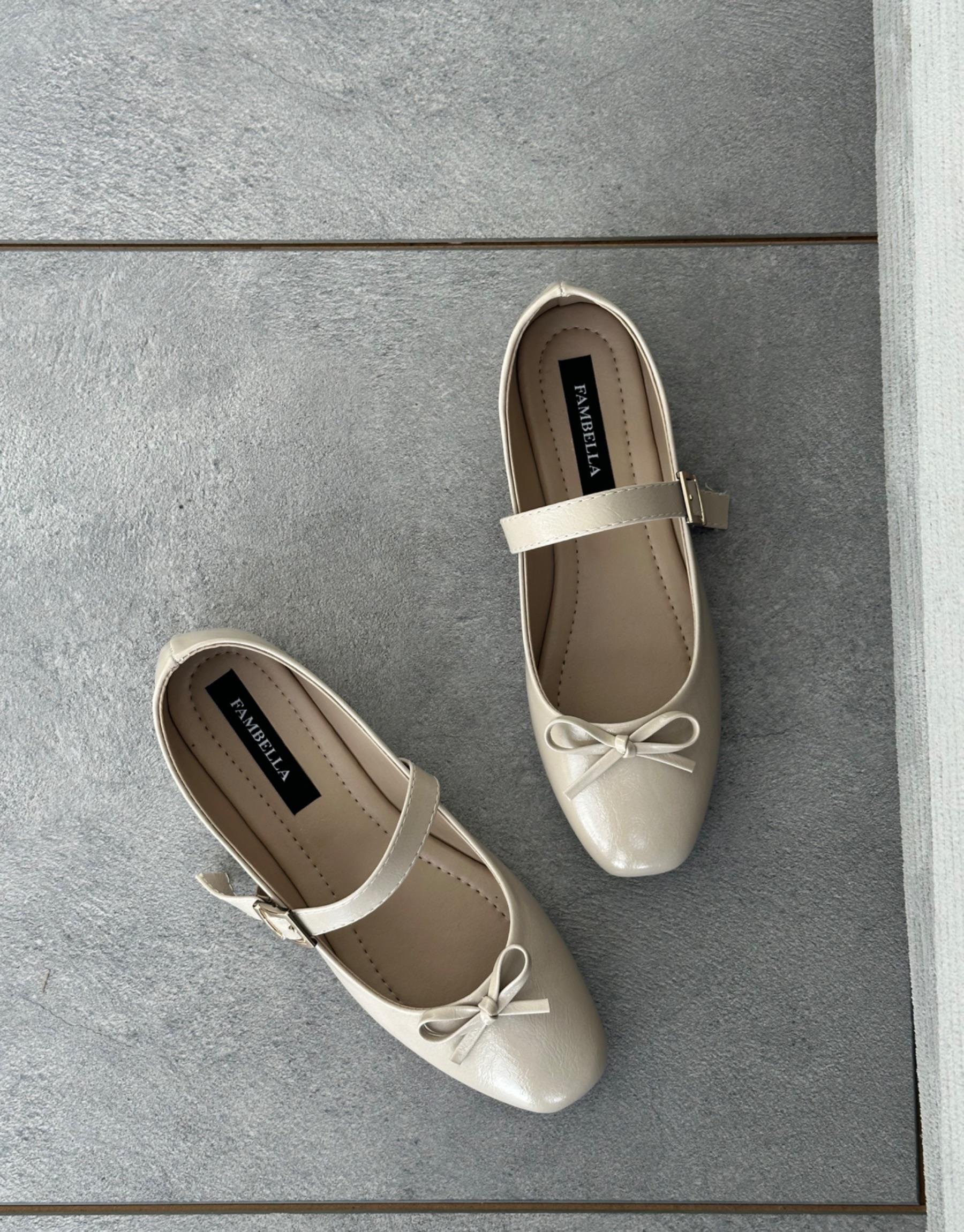 Bayan Bej Kırışık Melkas Oval Burun Fiyonk Detay Kemerli Kadın Babet | Fambella
