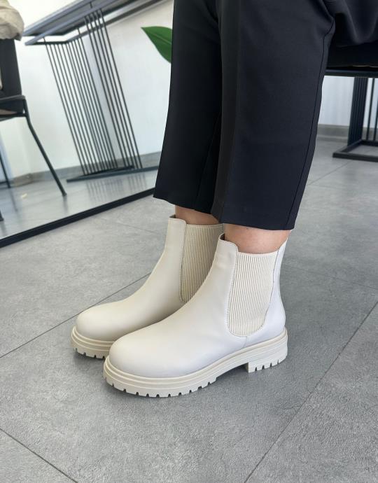 Bayan Bej Kırışık Nadia Sivri Burun Yan Fermuar Detay Hakiki Deri Kadın Çizme | Fambella