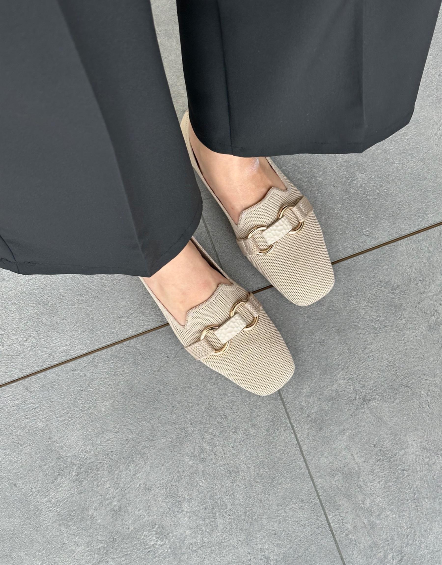 Bayan Bej Nando Küt Burun Ön Aksesuar Detay Kadın Triko Babet | Fambella