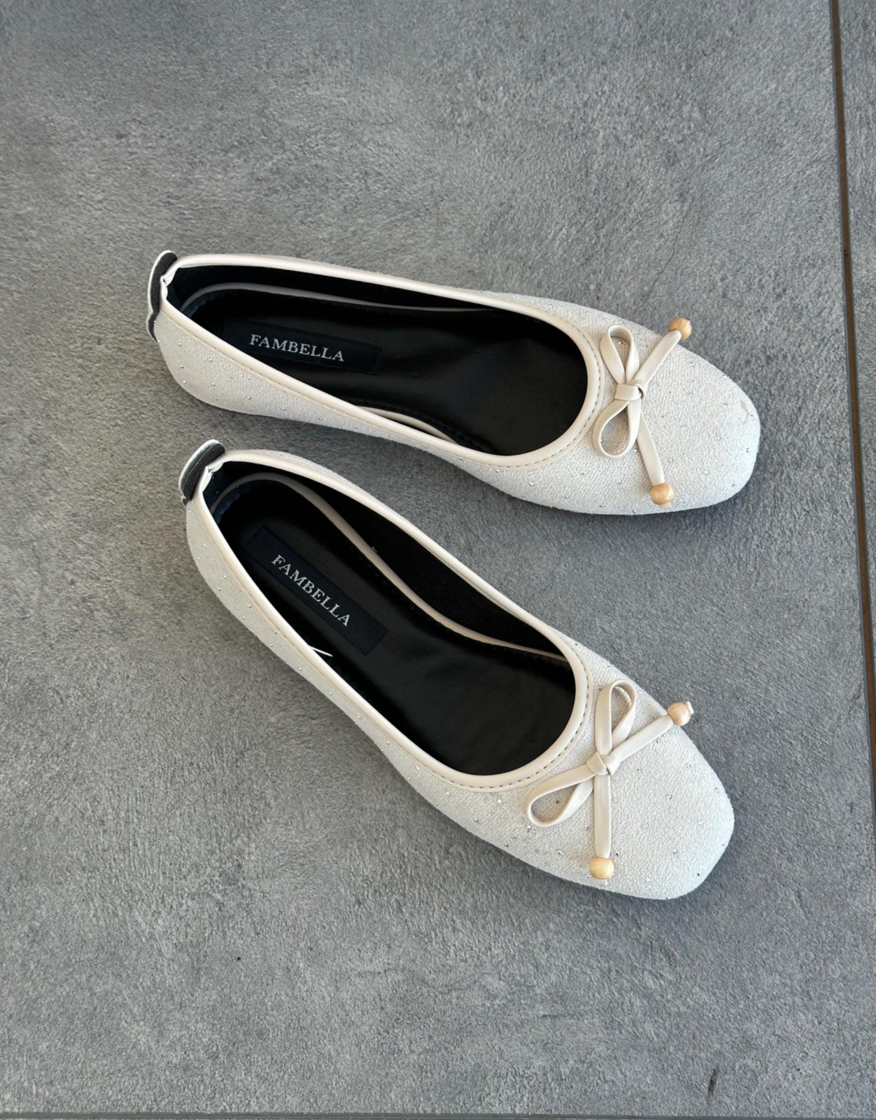 Bayan Bej Süet Yatten Küt Burun Taş Detay Kadın Babet | Fambella