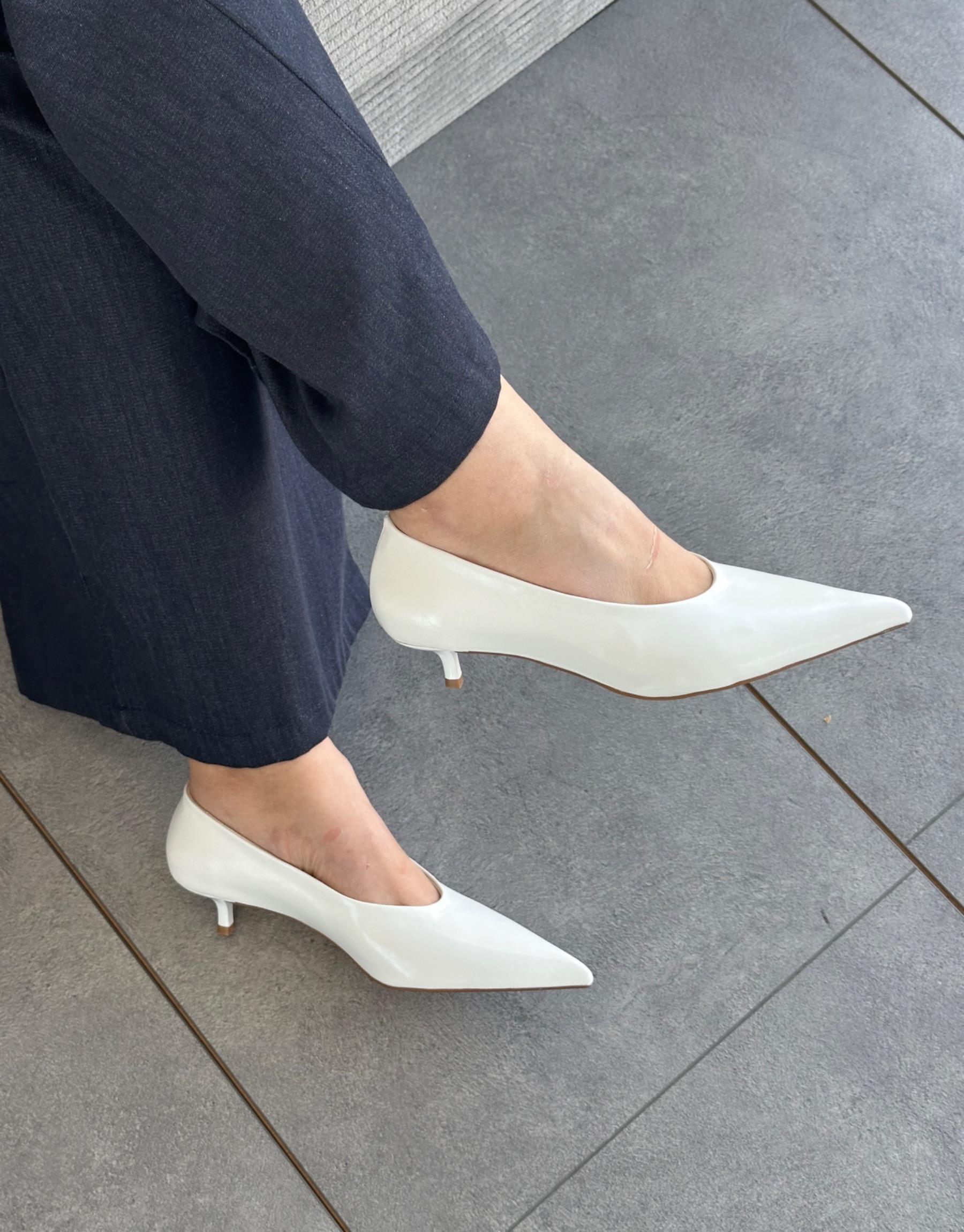 Bayan Beyaz Bellami Sivri Burun Arkası Kapalı Topuklu Kadın Ayakkabı | Fambella