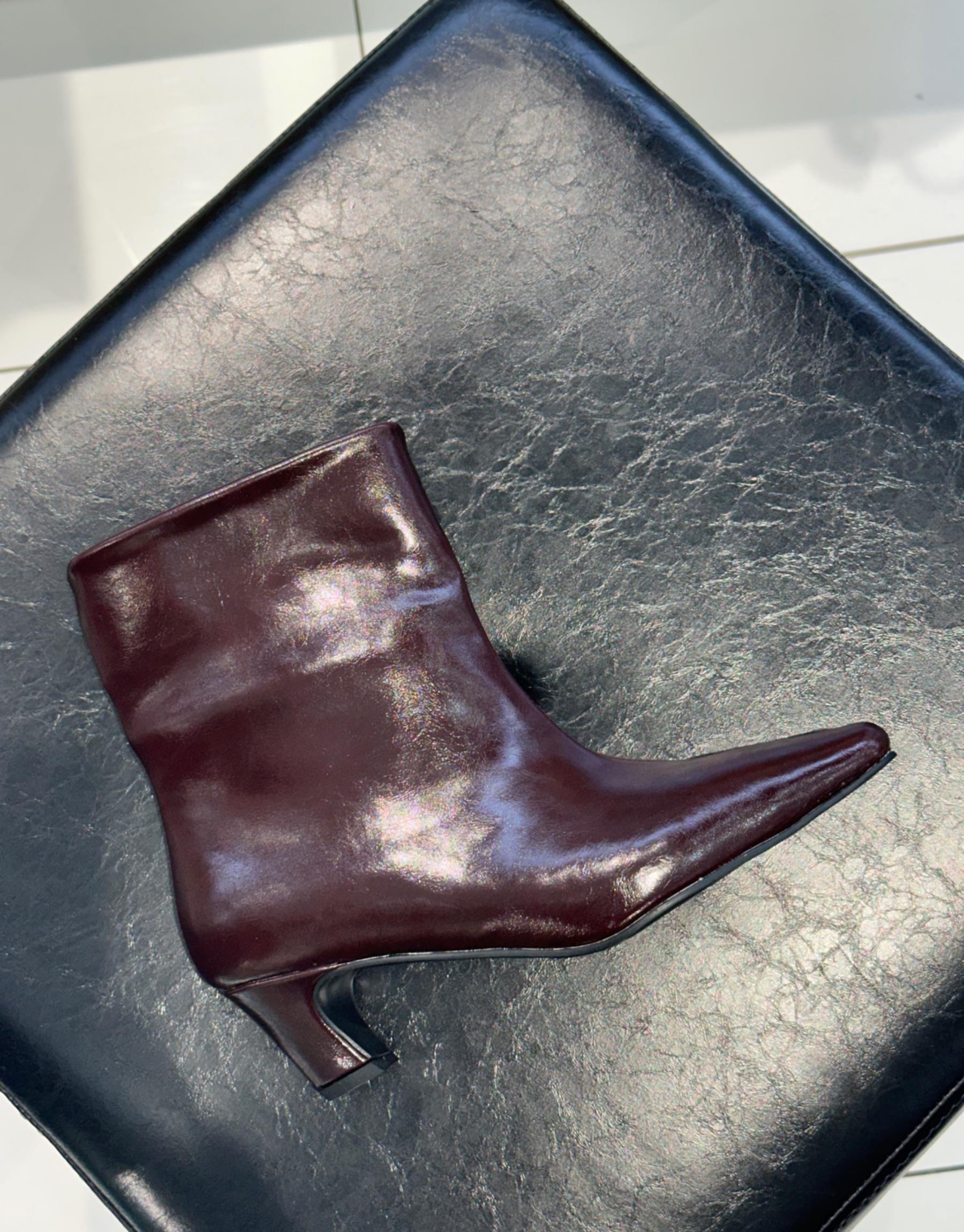 Bayan Bordo Kırışık Tatum Küt Burun Kısa Topuklu Kadın Botie | Fambella