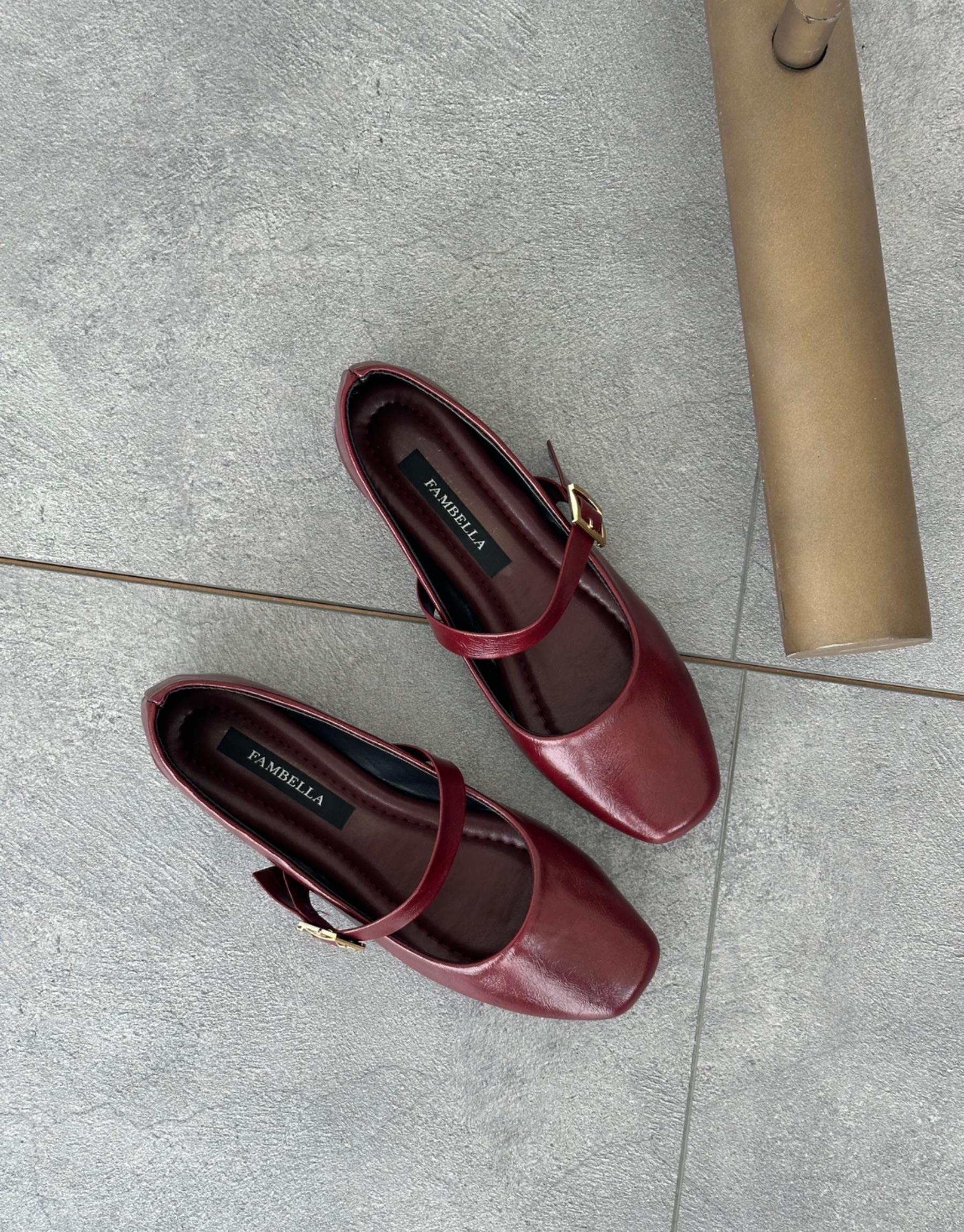 Bayan Bordo Selantino Küt Burun Toka Detay Kadın Babet | Fambella