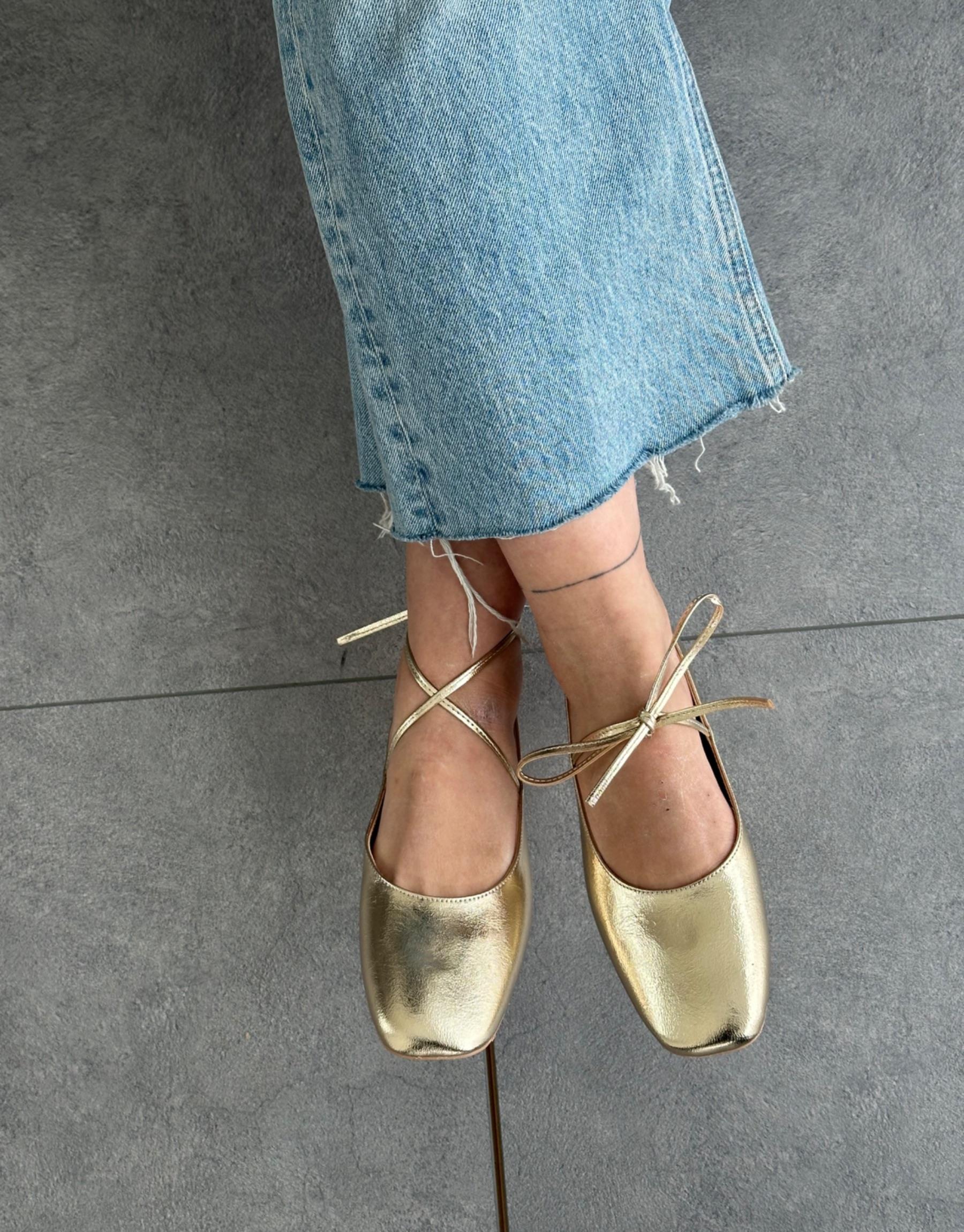 Bayan Gold Zico Küt Burun Yan Açık Detay İpli Kadın Babet | Fambella