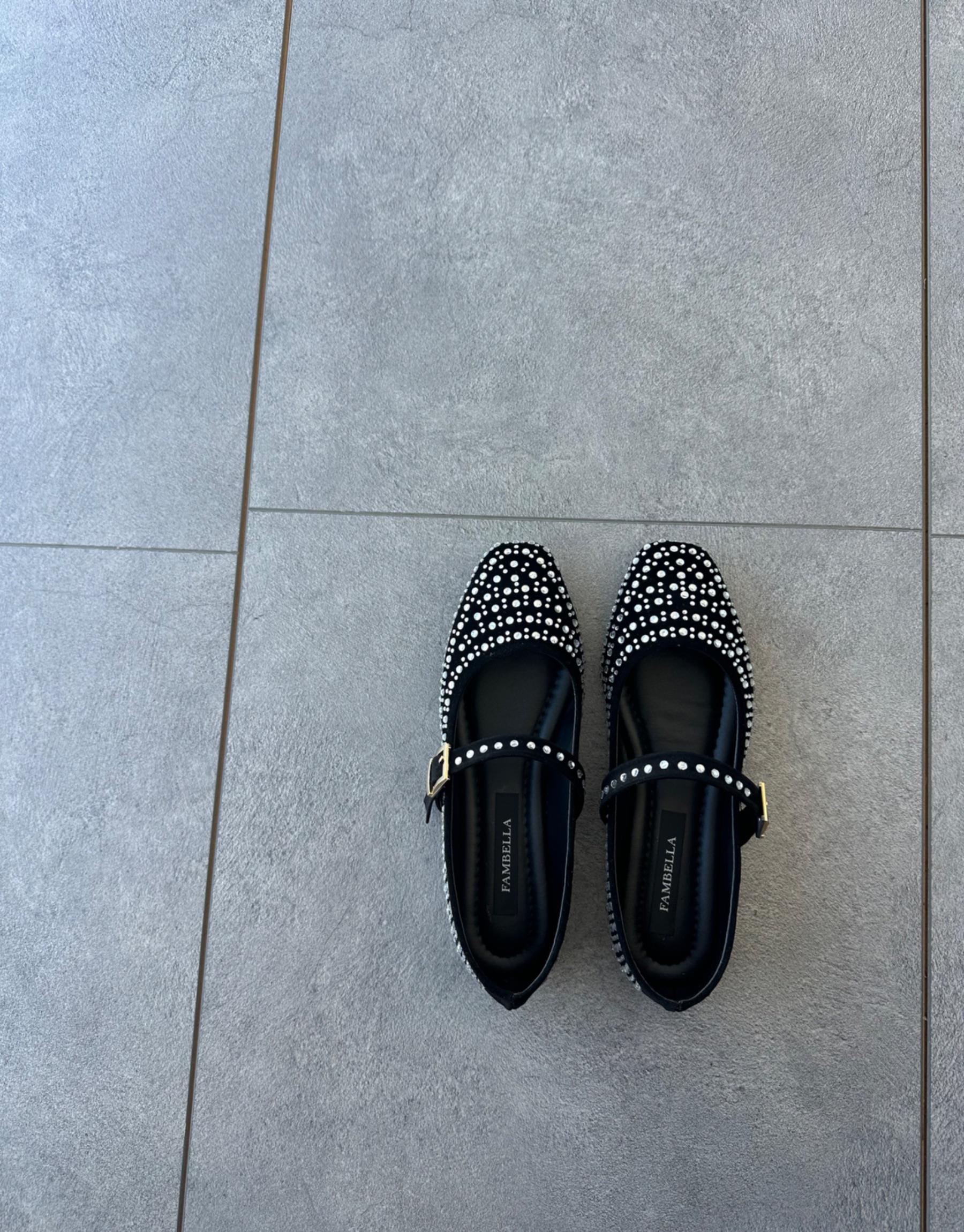 Selisse Yuvarlak Burun Taş Detay Kadın Babet Siyah