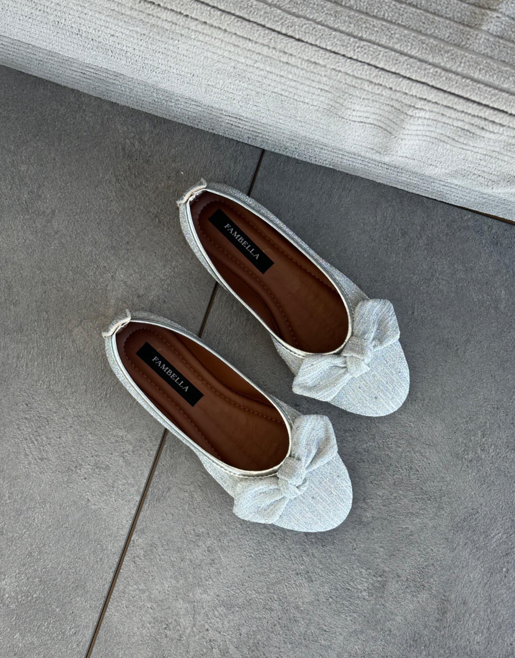 Bayan Gümüş Sirendi Yuvarlak Burun Fiyonk Detay Kadın Babet | Fambella