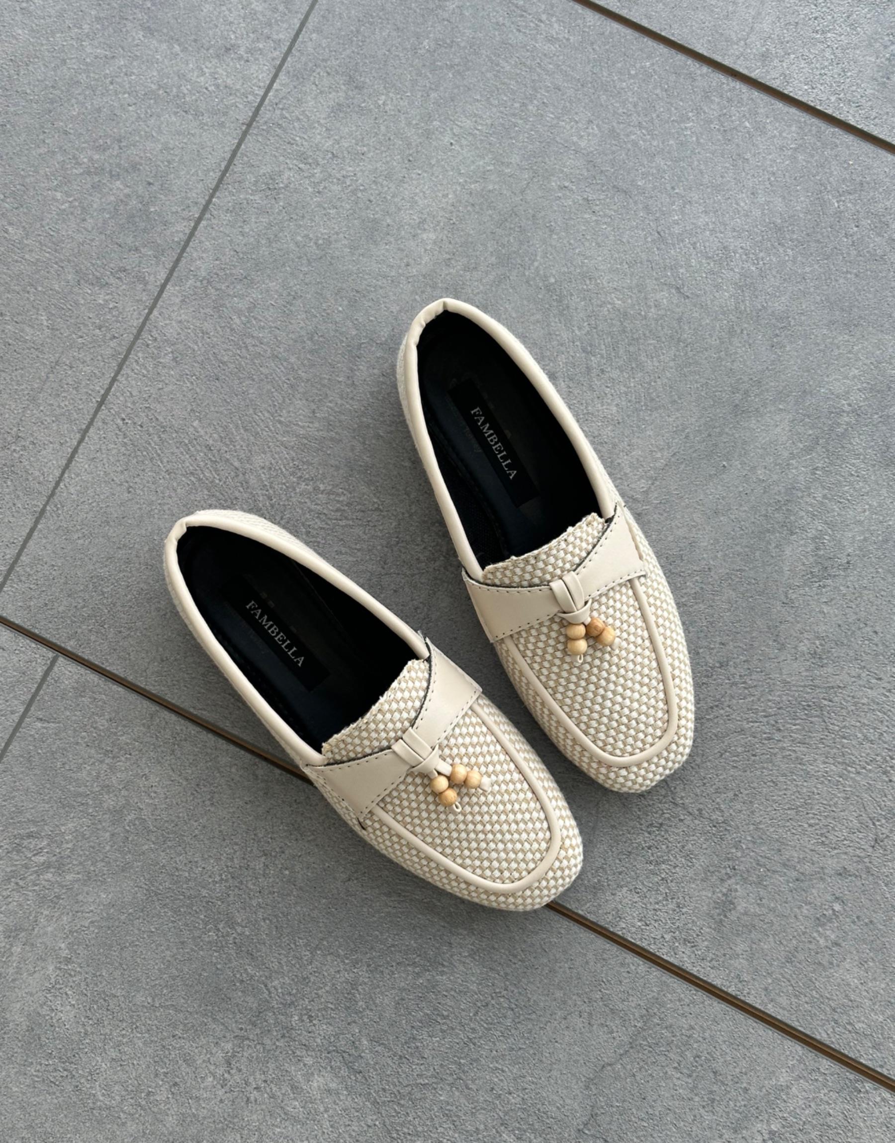 Bayan Hasır Bej Sılla Küt Burun Boncuk Detay Kadın Babet | Fambella
