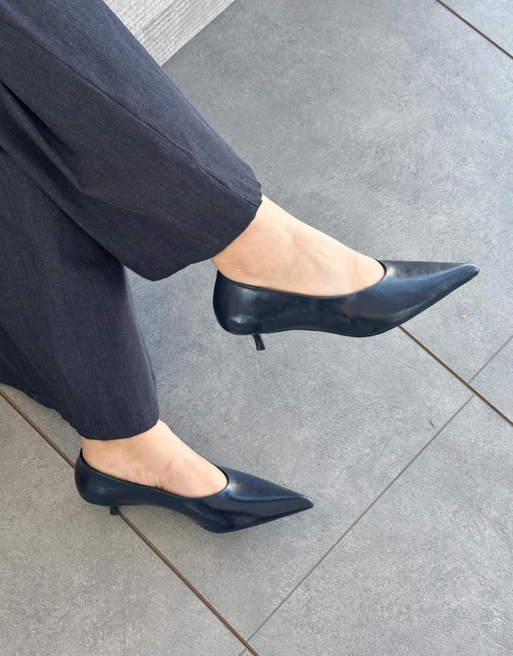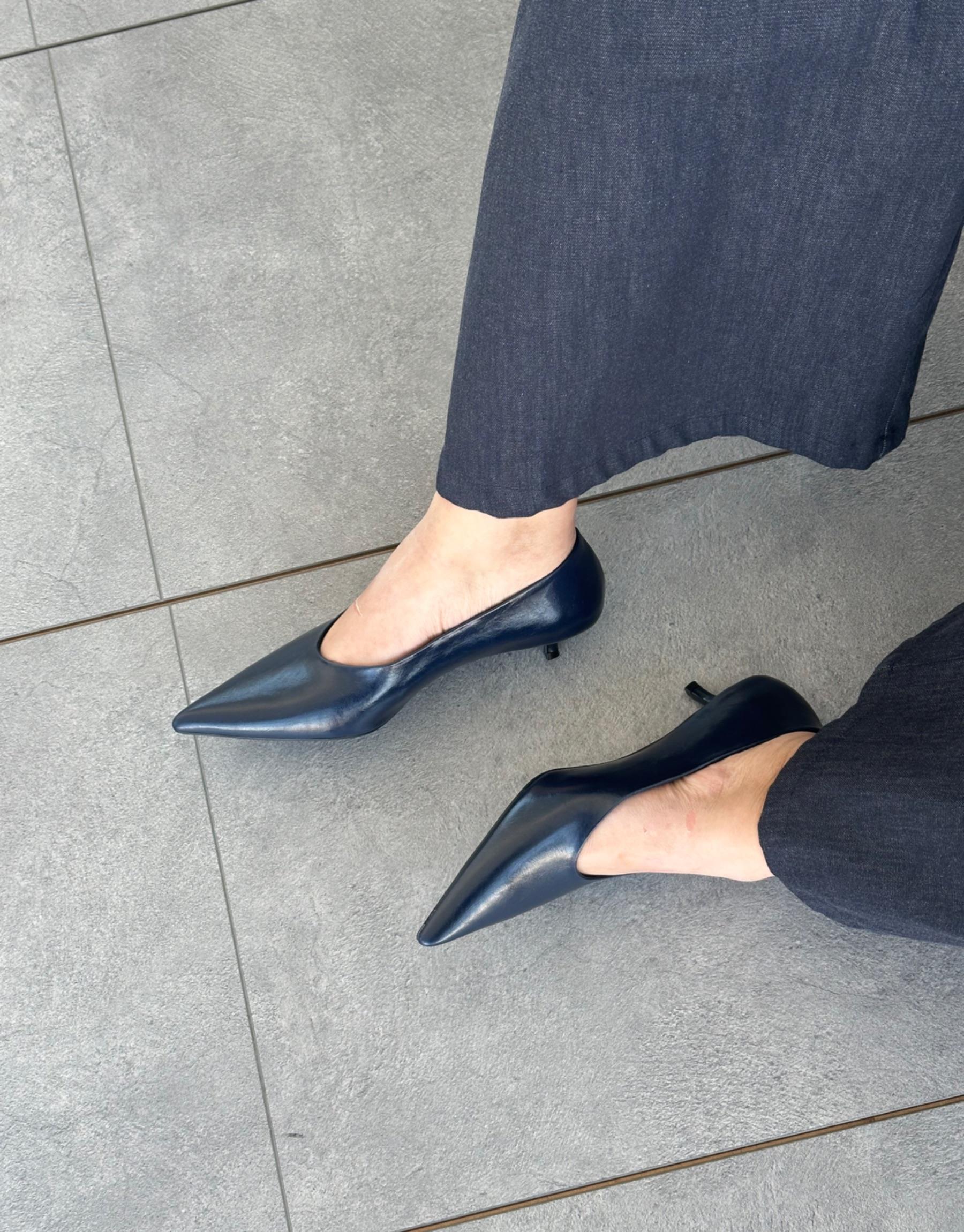 Bayan Lacivert Bellami Sivri Burun Arkası Kapalı Topuklu Kadın Ayakkabı | Fambella