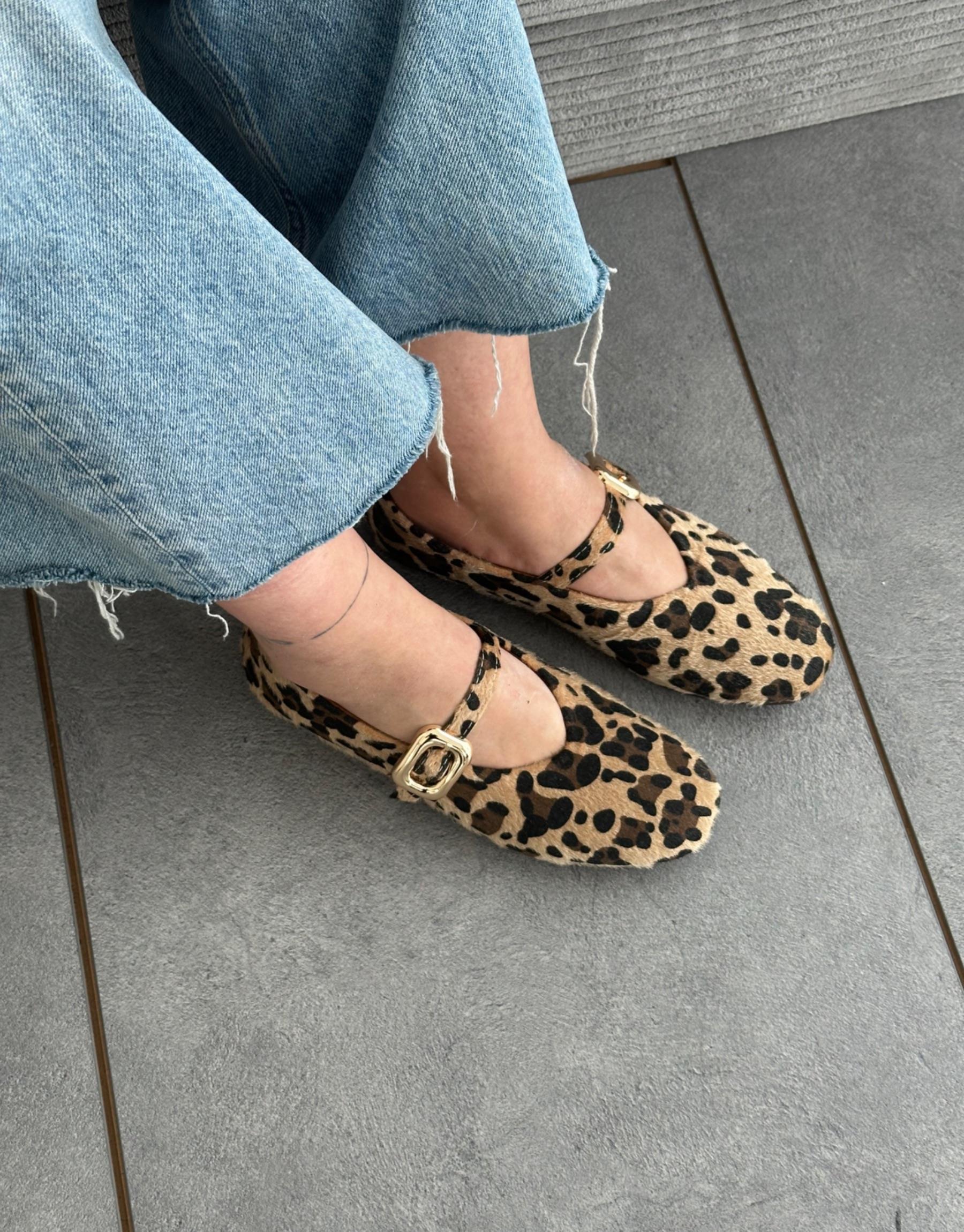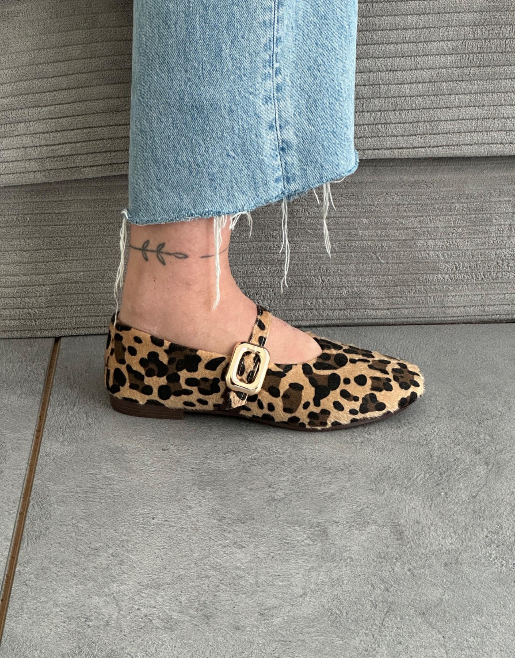 Bayan Leopar Henna Oval Burun Kemer Detay Kadın Babet | Fambella