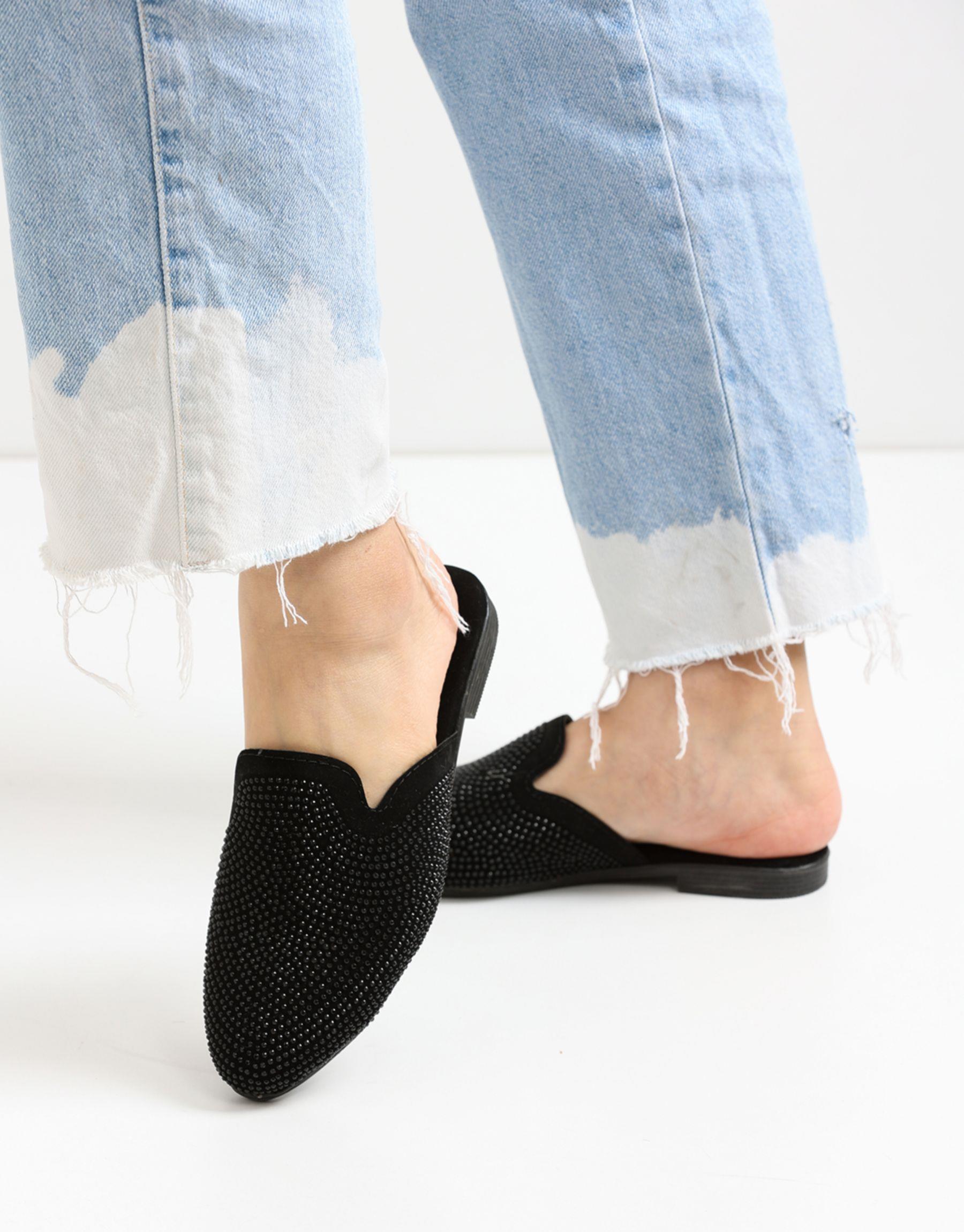 Bayan Siyah Allo Oval Burun Taşlı Kadın Terlik | Fambella