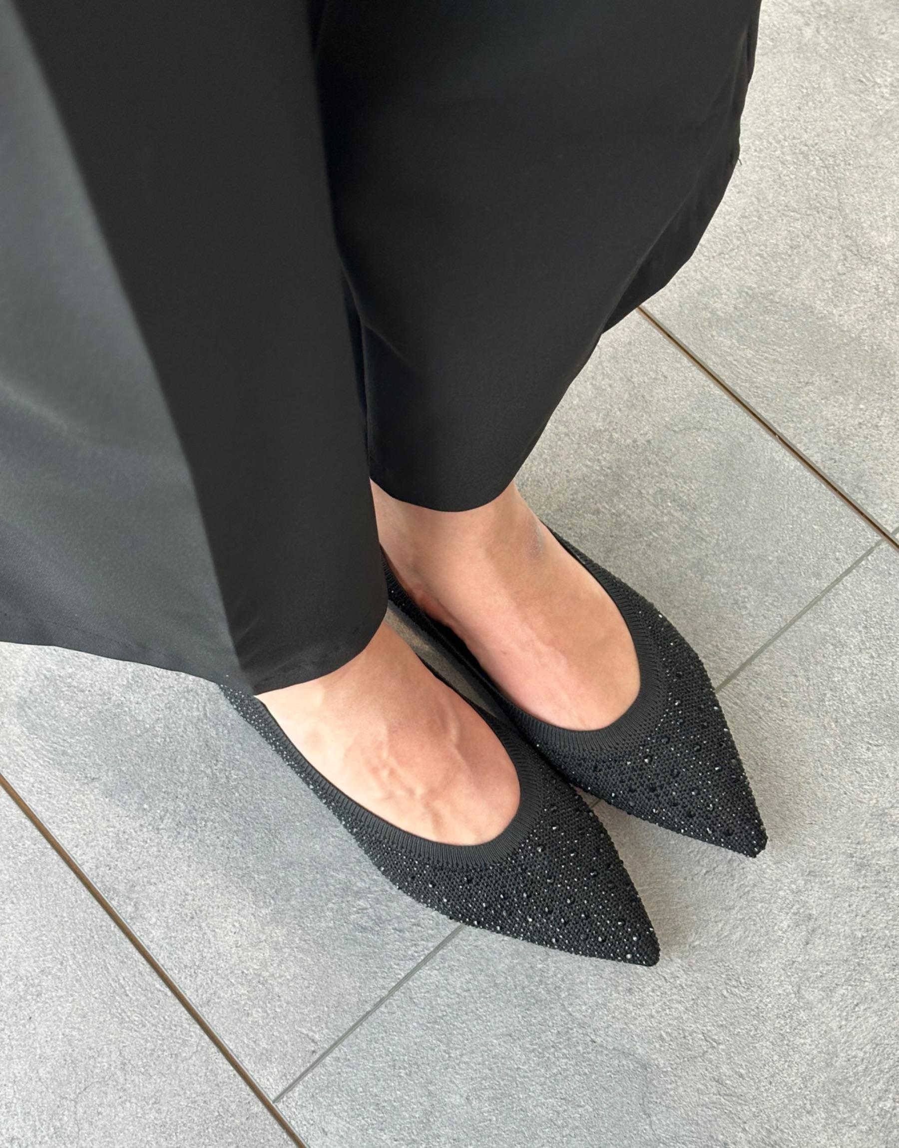 Bayan Siyah Elaso Sivri Burun Komple Taşlı Triko Kumaş Kadın Babet | Fambella