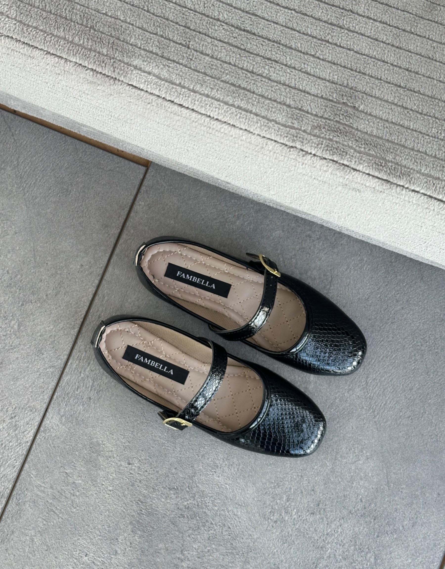 Asyan Küt Burun Kemer Detay Kadın Örgü Babet Siyah