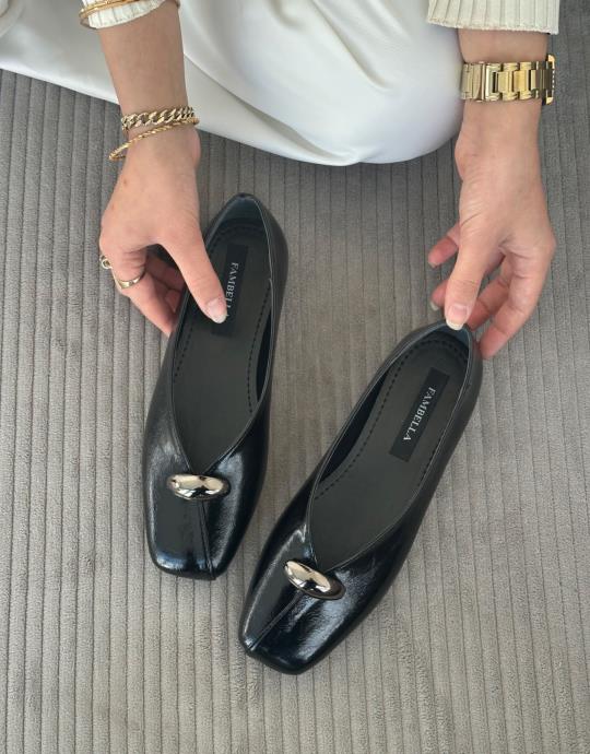 Valverde Küt Burun Ön Aksesuar Detay Kadın Babet Siyah Kırışık