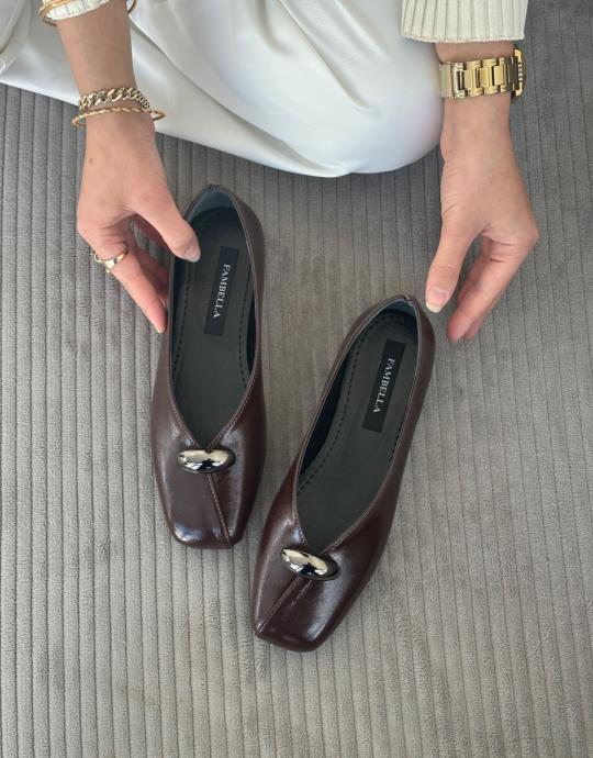 Valverde Küt Burun Ön Aksesuar Detay Kadın Babet Acı Kahve Kırışık