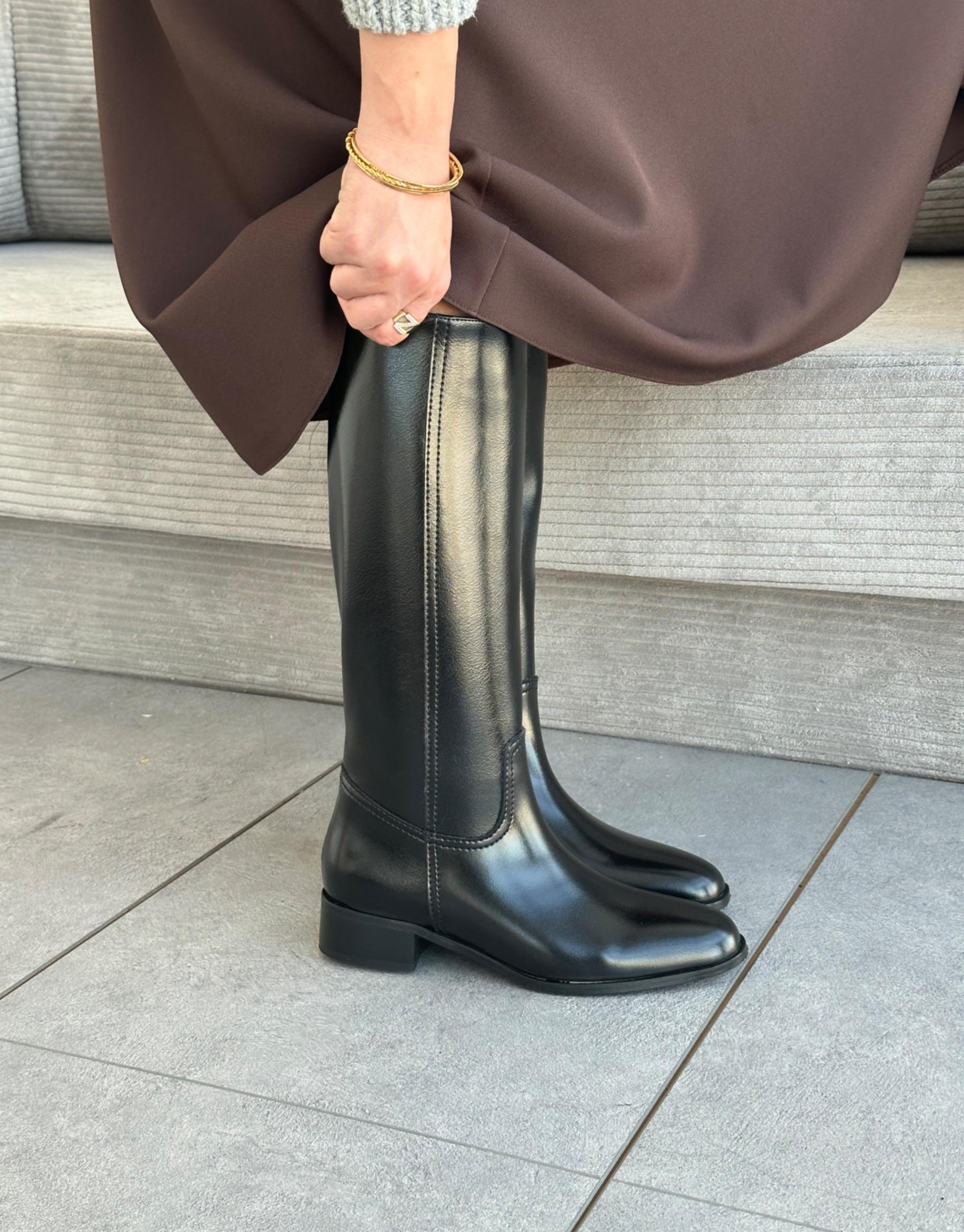 Bayan Siyah Lena Küt Burun Kadın Çizme | Fambella
