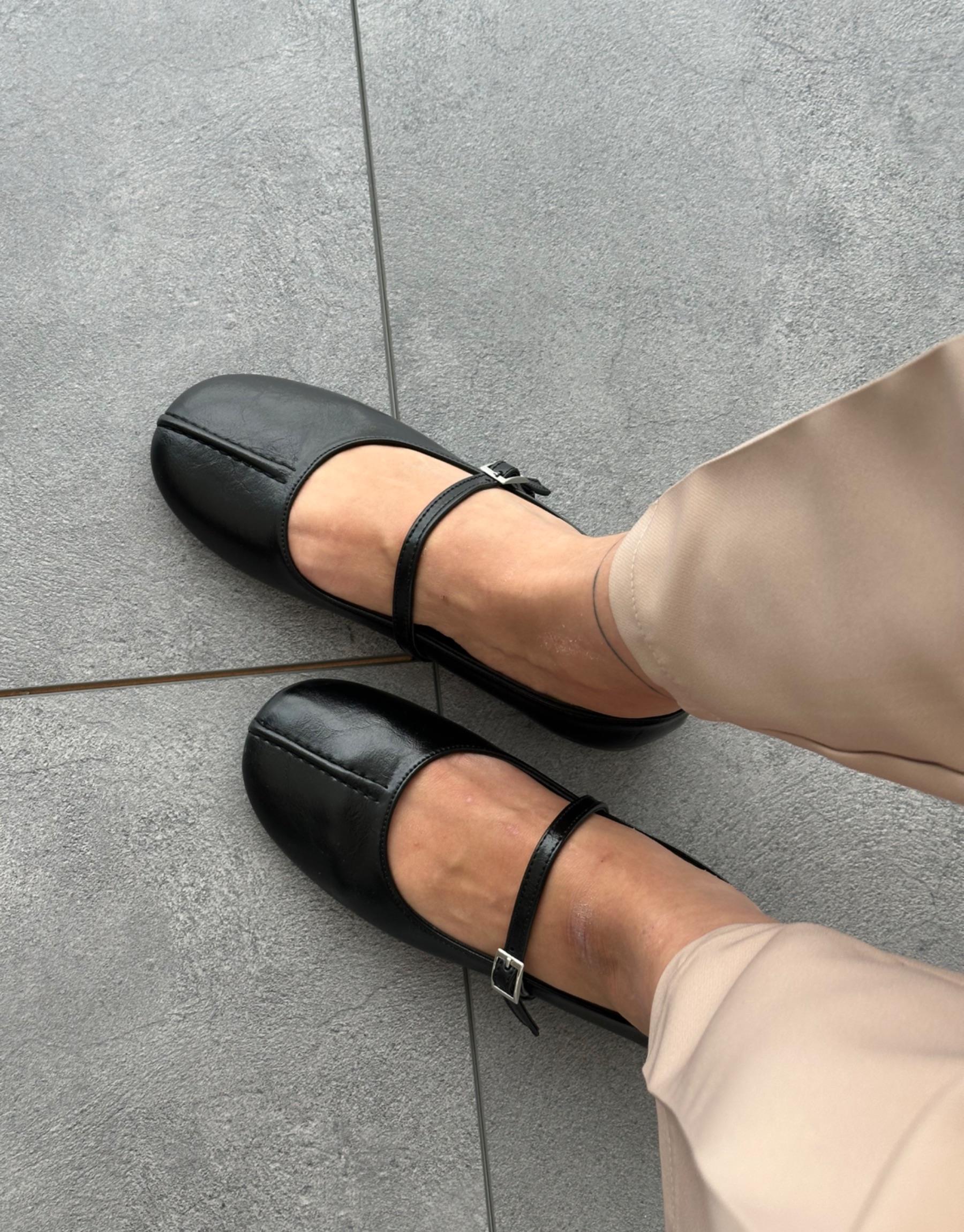Bayan Siyah Paney Yuvarlak Burun Atkı Detay Kadın Babet | Fambella