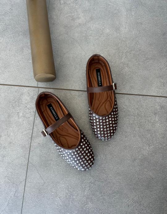 Selisse Yuvarlak Burun Taş Detay Kadın Babet Acı Kahve