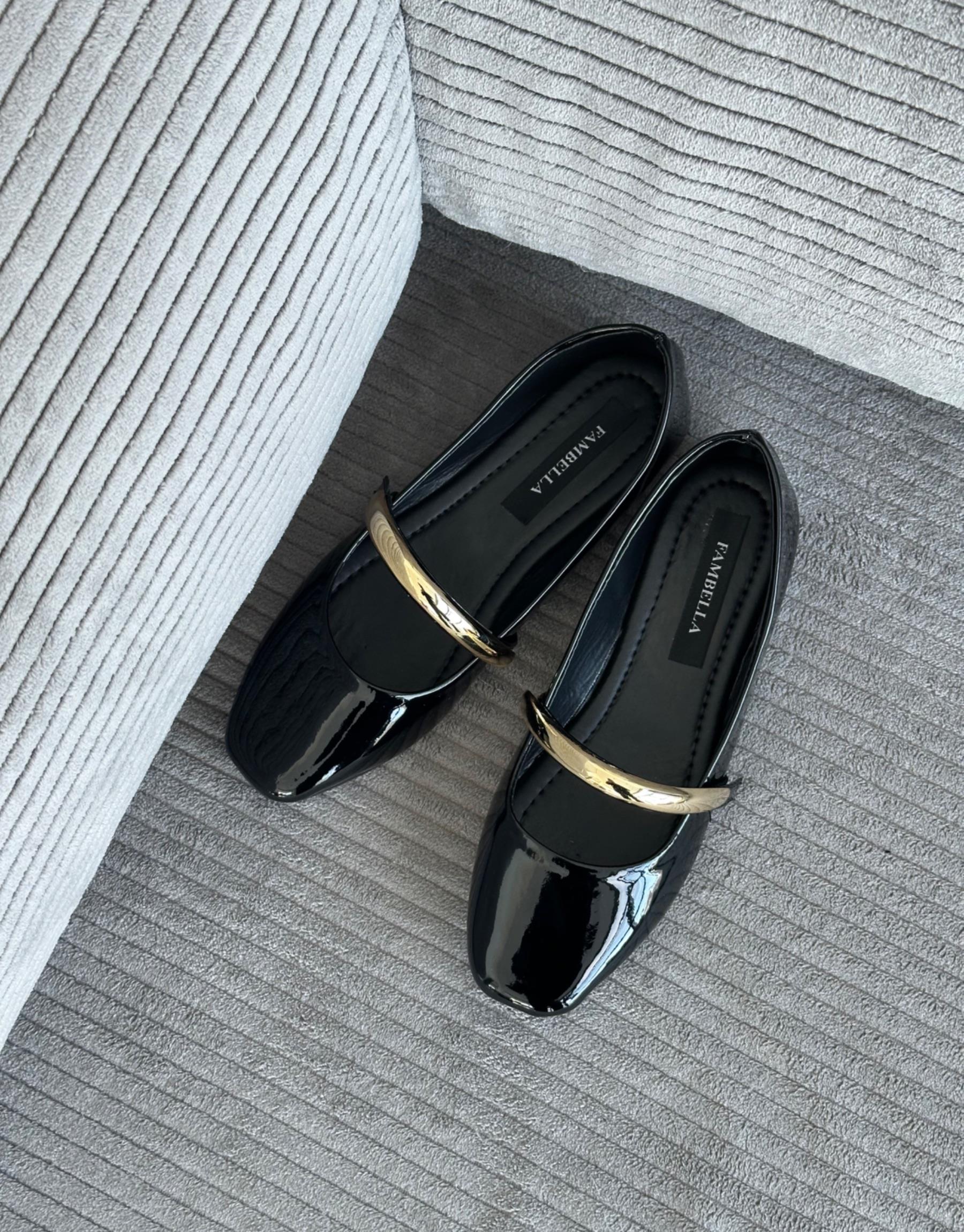 Bayan Siyah Sharen Oval Burun Aksesuar Detay Kadın Babet | Fambella