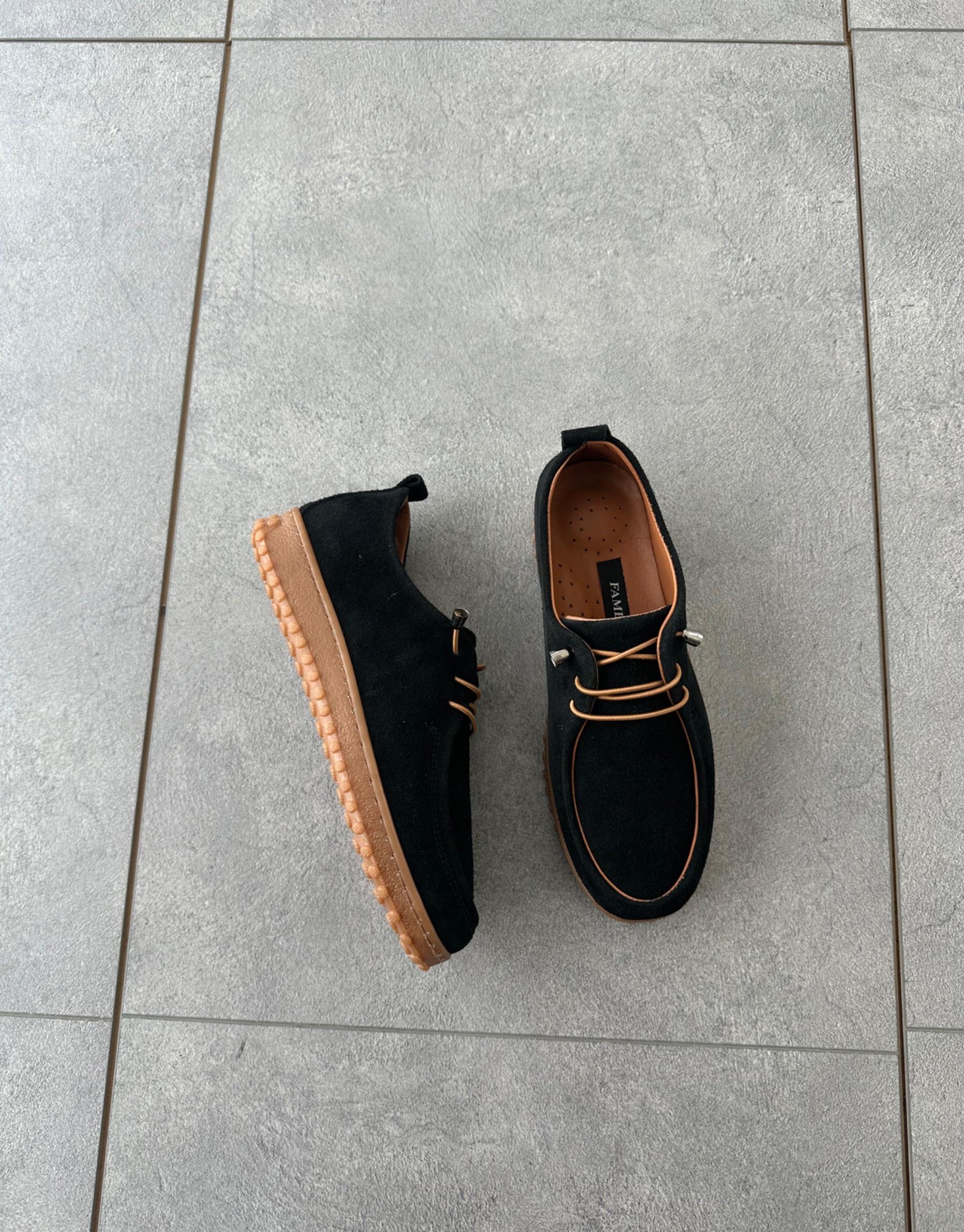 Bayan Siyah Süet Adar Oval Burun Hakiki Deri Kadın Ayakkabı | Fambella