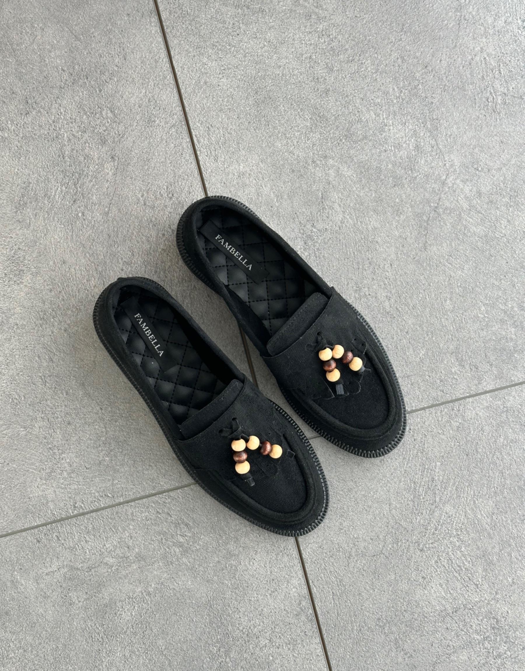 Viora Oval Burun Ön Püskül Detay Kadın Loafer Siyah Süet