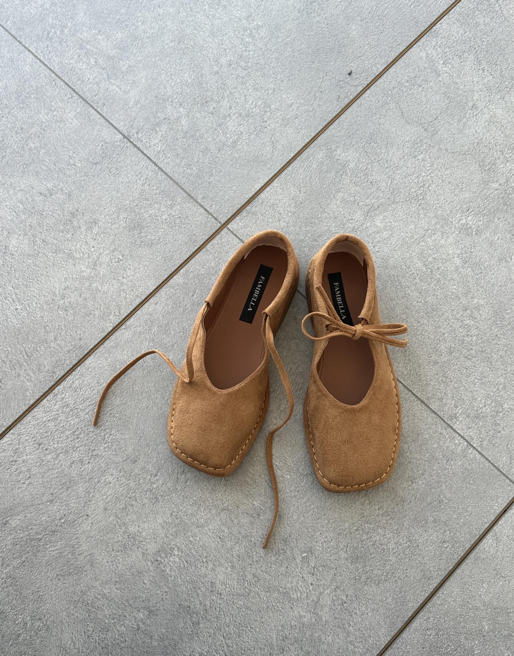 Bayan Taba Süet Yuri Oval Burun Bağcıklı Kadın Babet | Fambella
