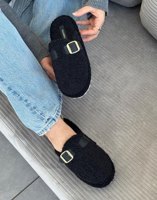 Zikel Oval Burun Kemer Detay Bayan Ev Terliği Siyah