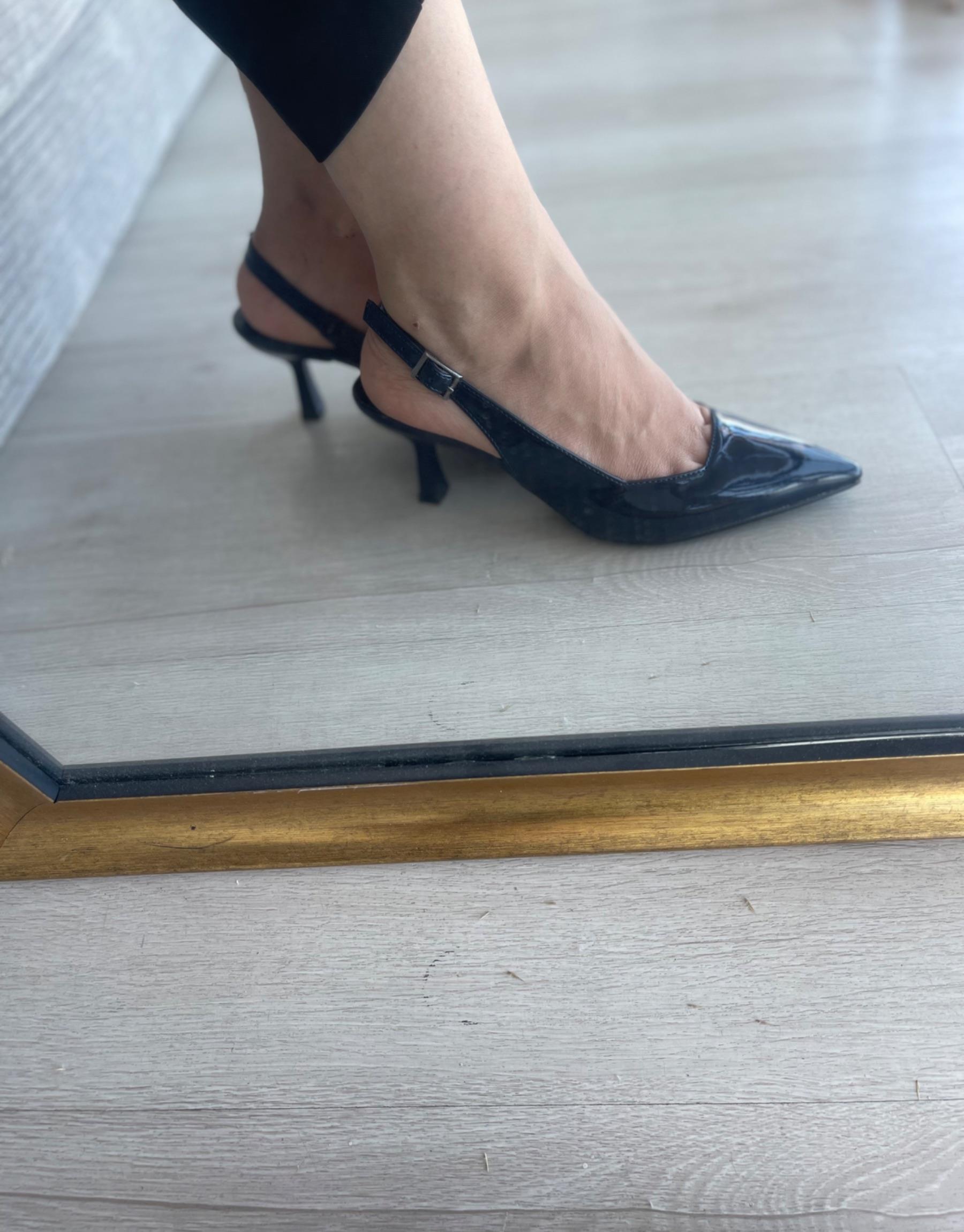 Bayan Lacivert Rugan Devin Sivri Burun Arkası Açık Kadın Topuklu Ayakkabı | Fambella