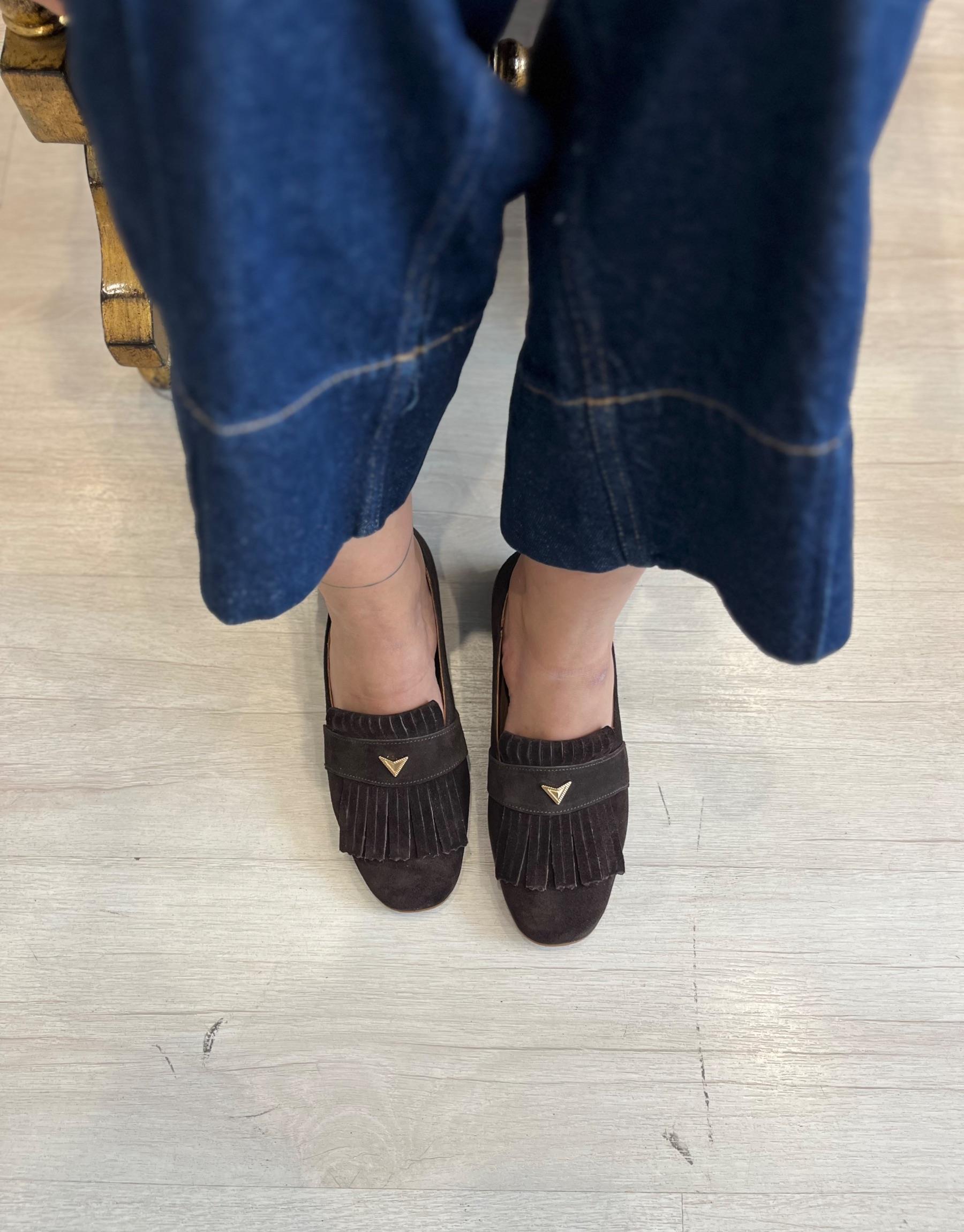 Bayan Acı Kahve Süet Gaven Oval Burun Üst Aksesuar Detay Hakiki Deri Kadın Babet | Fambella