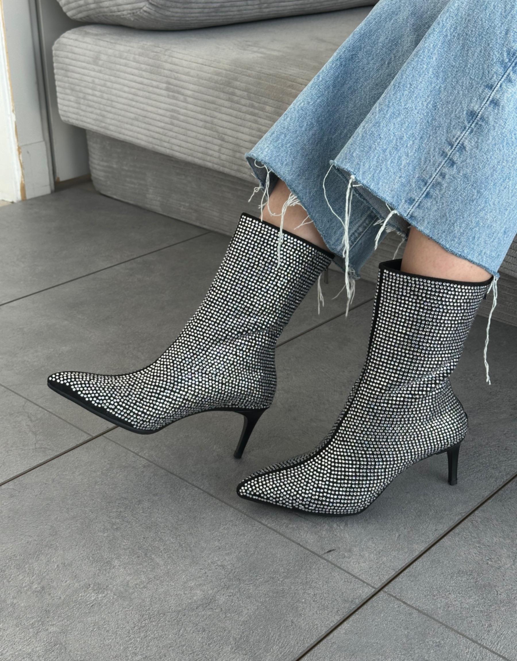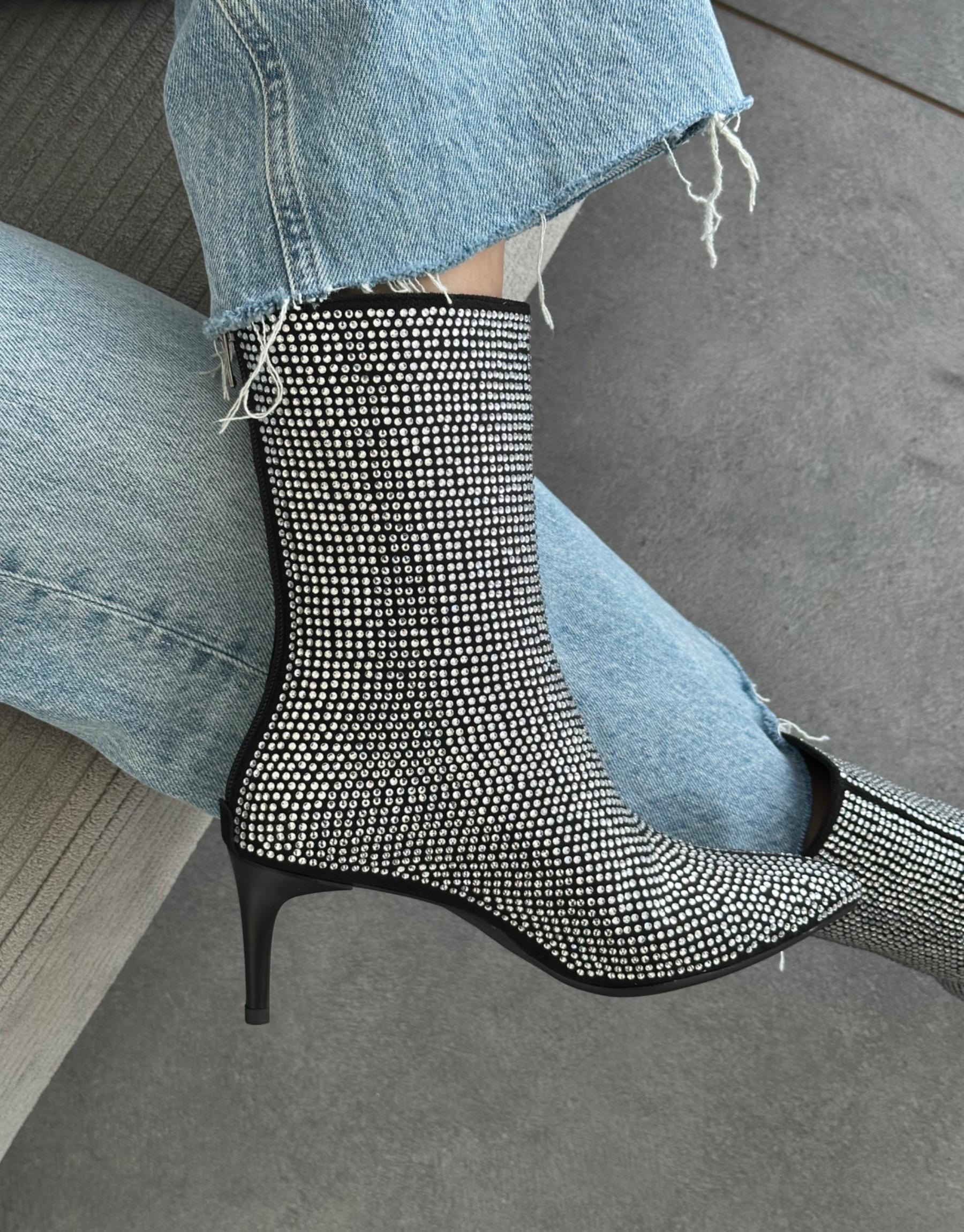 Bayan Siyaha Gümüş Givenchy Sivri Burun Taşlı Fermuar Detay İnce Bayan Bot | Fambella