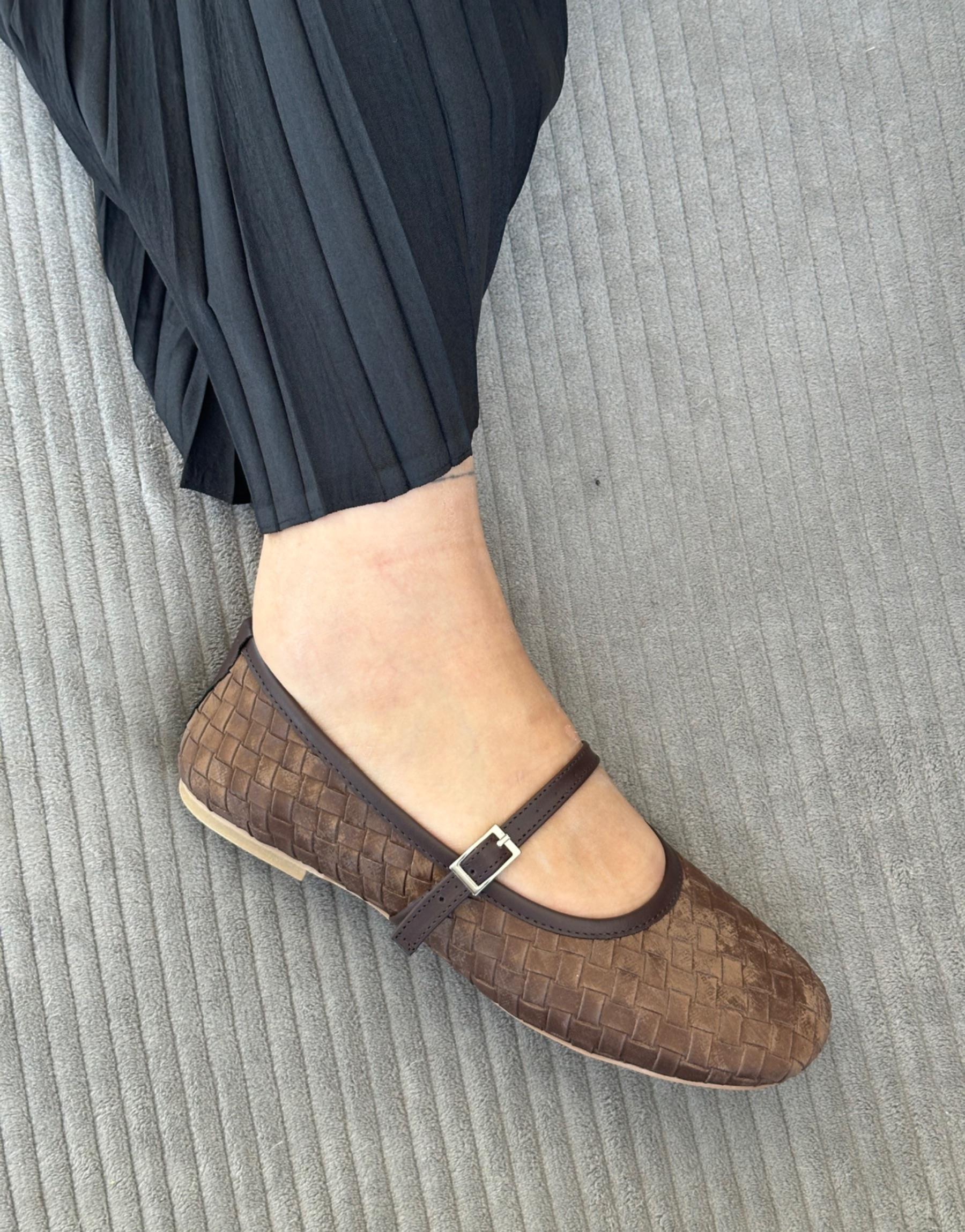 Bayan Acı Kahve Melloni Oval Burun Atkı Aksesuar Detay Kadın Babet | Fambella