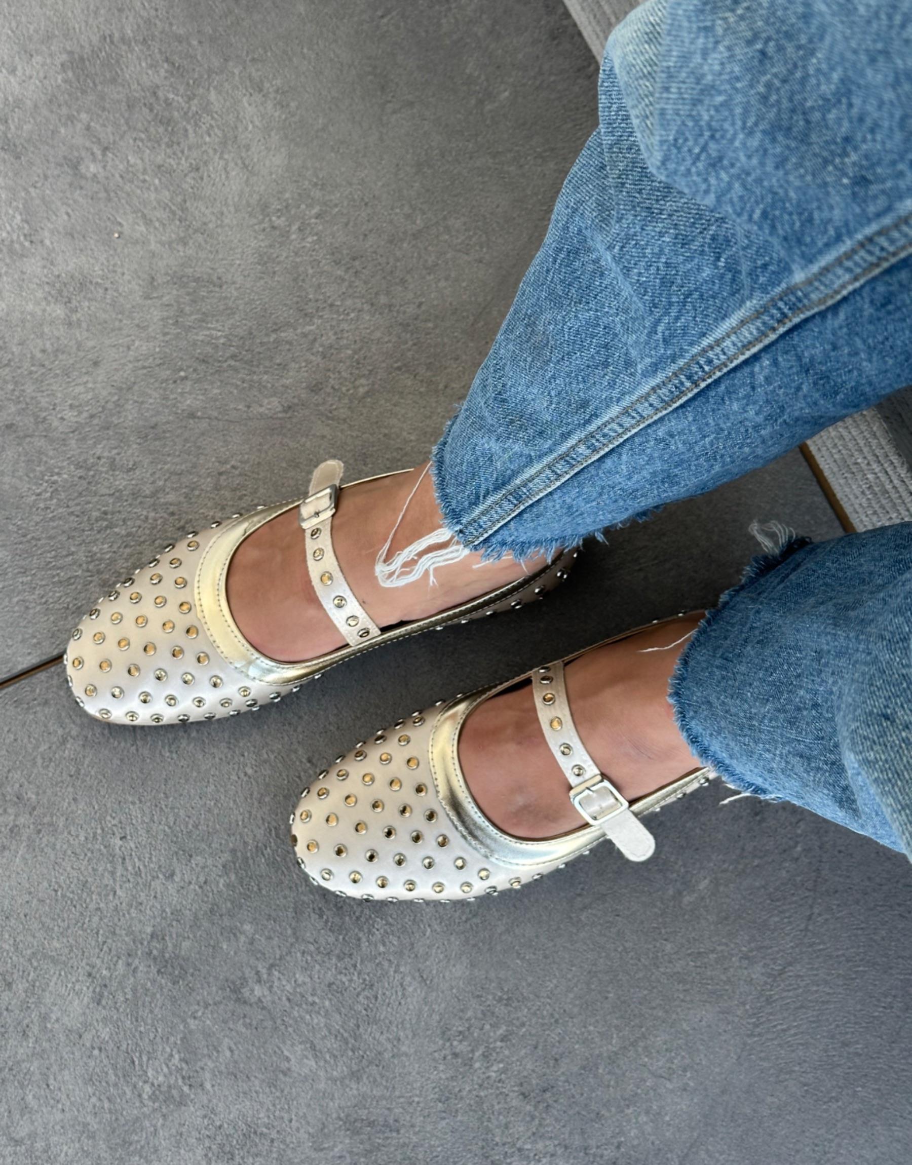 Bayan Bej Dersi Oval Burun Taşlı Kemer Detay Kadın Babet | Fambella