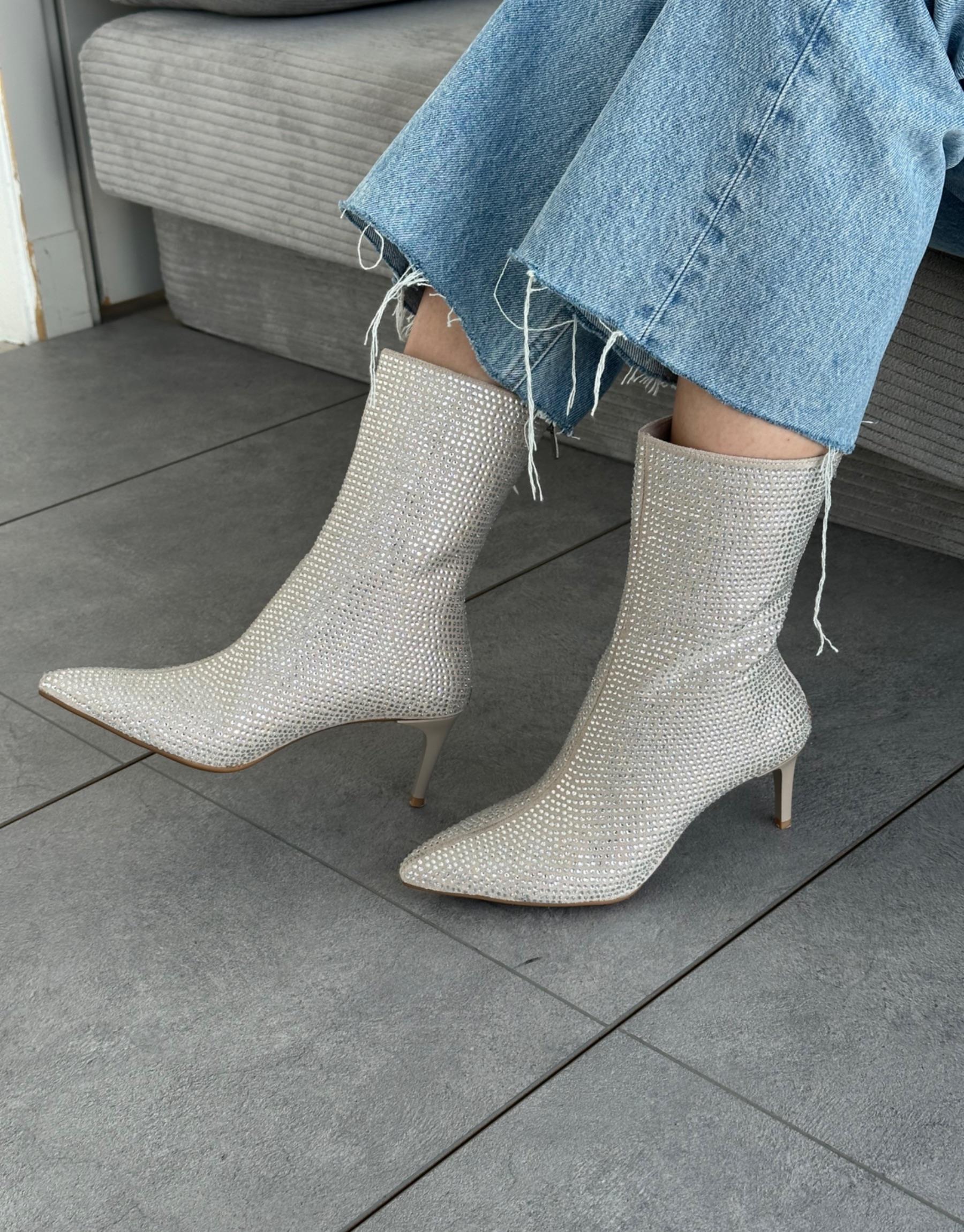 Bayan Bej Givenchy Sivri Burun Taşlı Fermuar Detay İnce Bayan Bot | Fambella