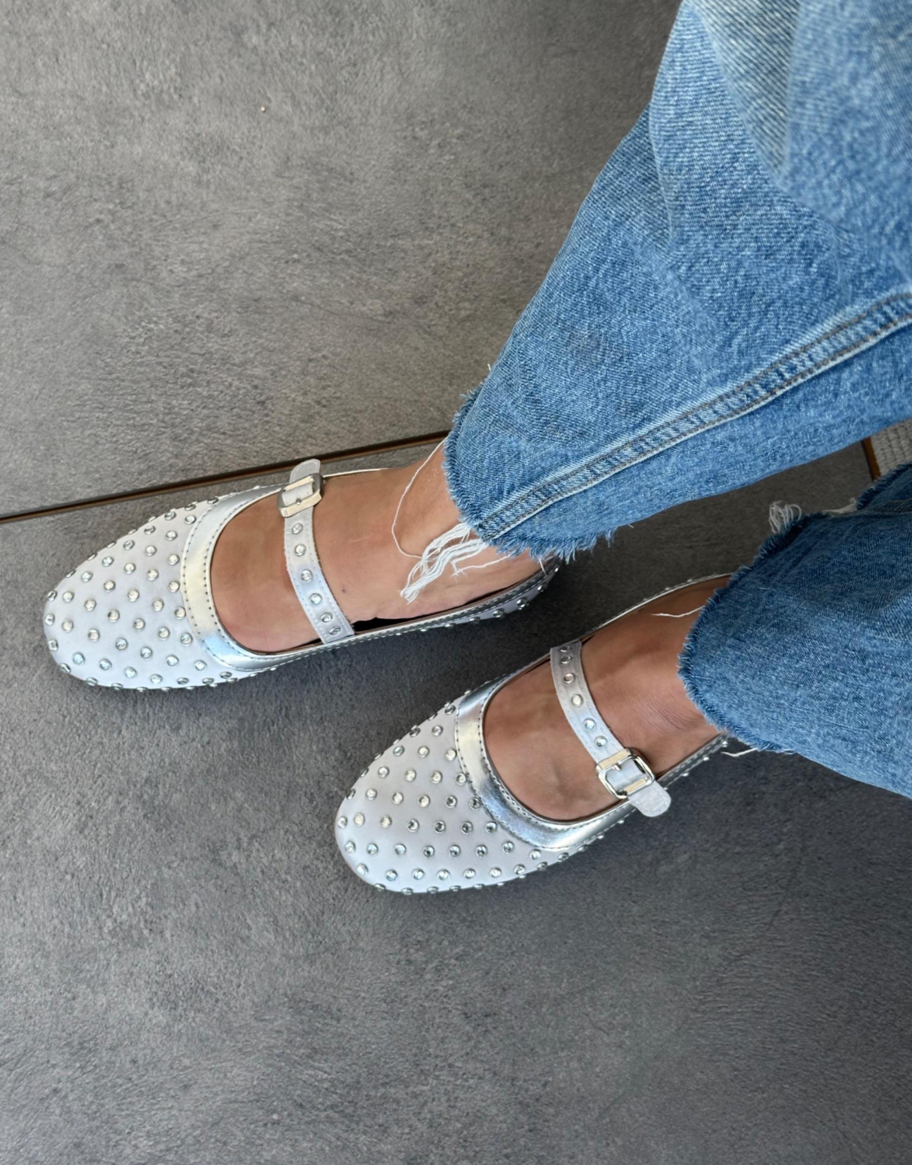 Bayan Gümüş Dersi Oval Burun Taşlı Kemer Detay Kadın Babet | Fambella