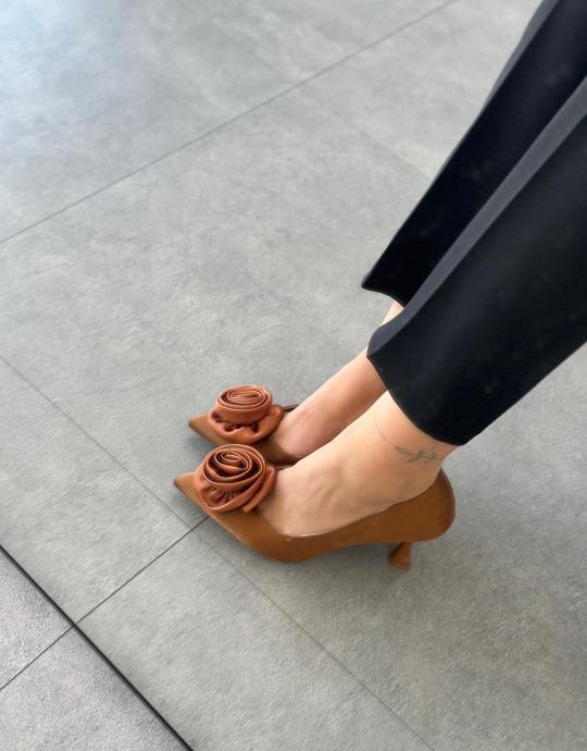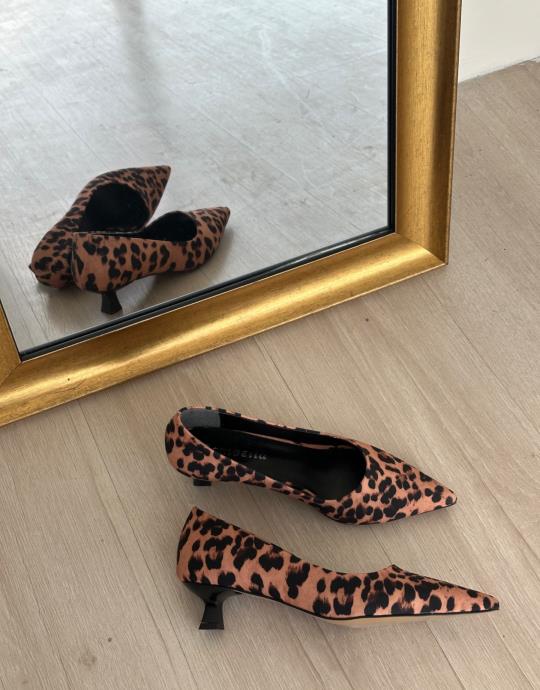 Bayan Leopar Champ Sivri Burun Mat Saten Kumaş Kadın Topuklu Ayakkabı | Fambella