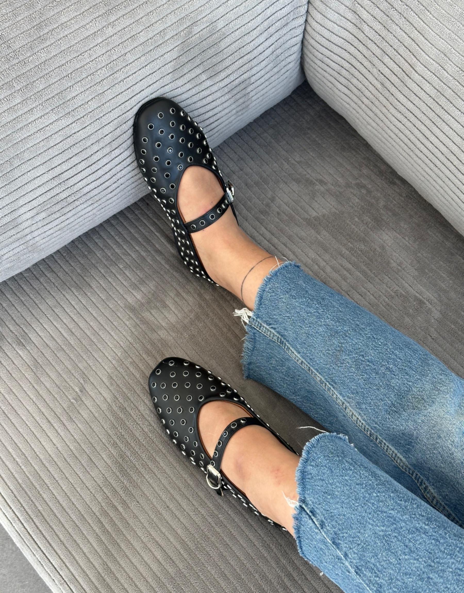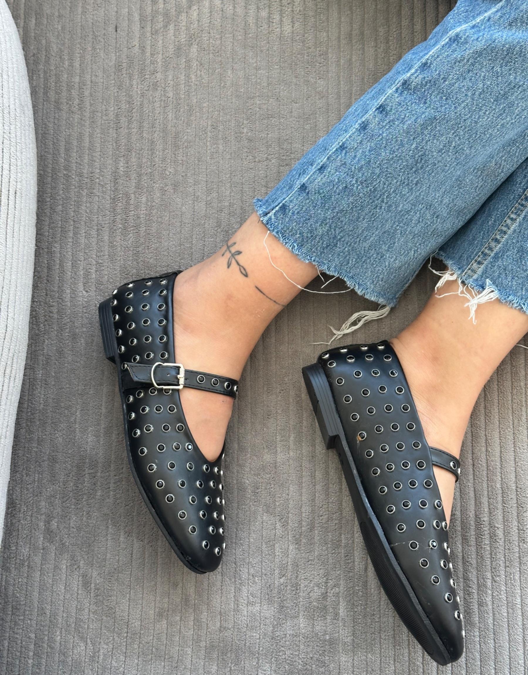 Bayan Siyah Bionna Oval Burun Taşlı Kemer Detay Kadın Babet | Fambella